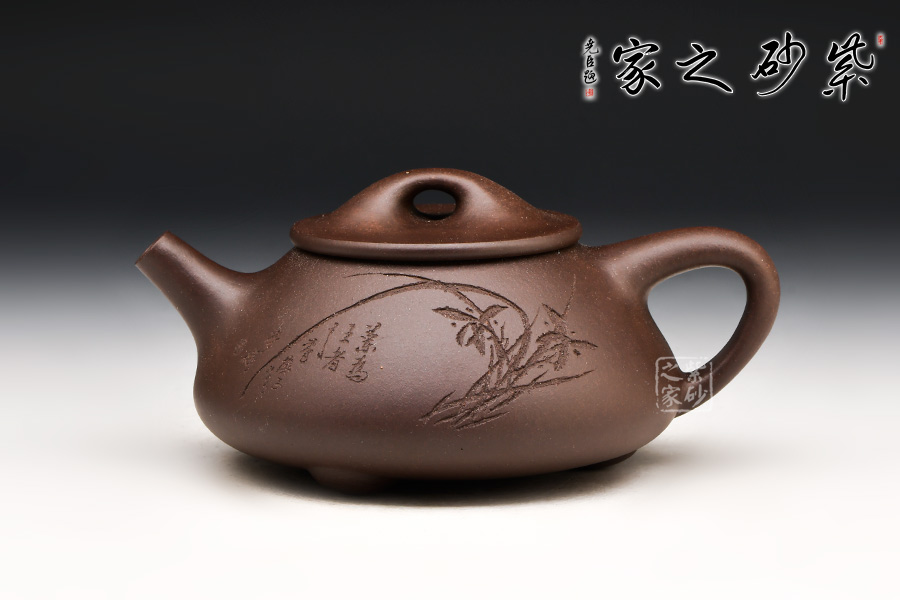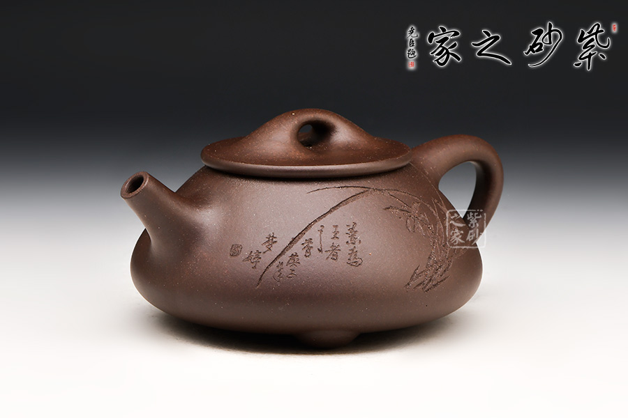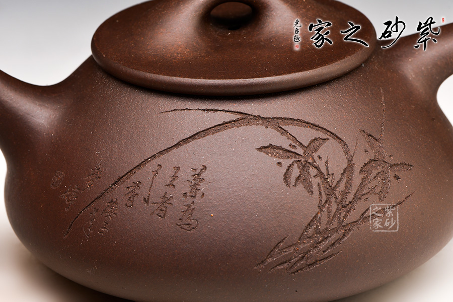 石瓢壺最大亮點在于作者自制自銘。栩栩如生的蘭花,秀氣典雅的小篆,不僅顯得砂壺古韻別致,觀賞價值極高,而且收藏價值也不錯。