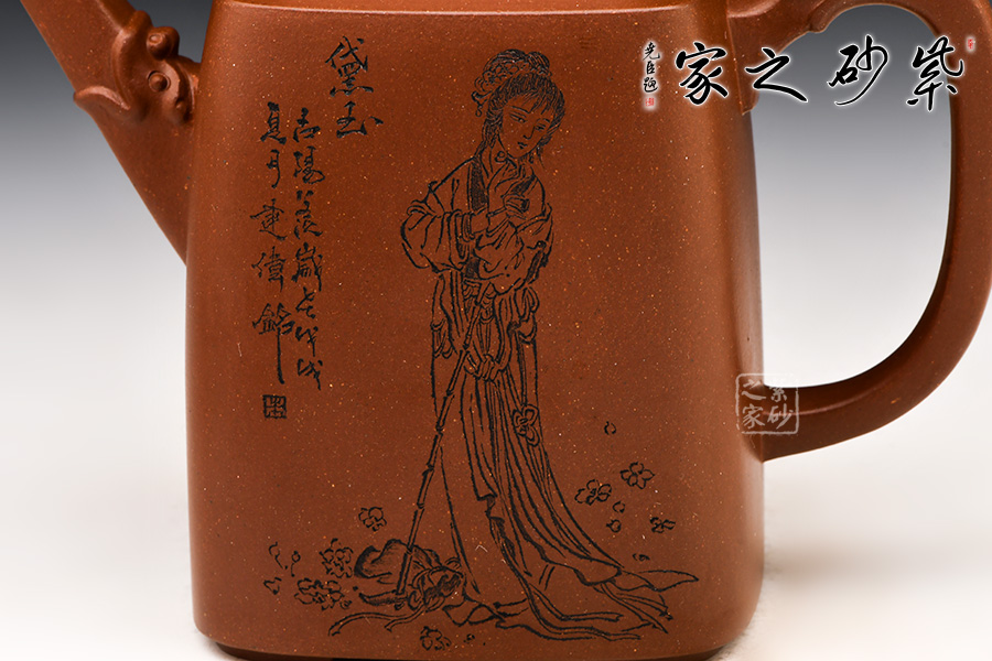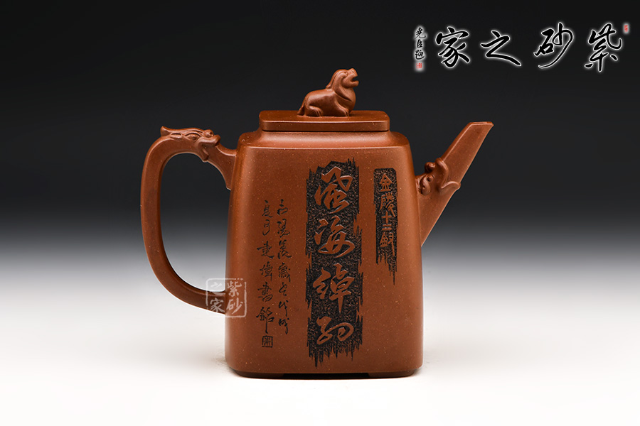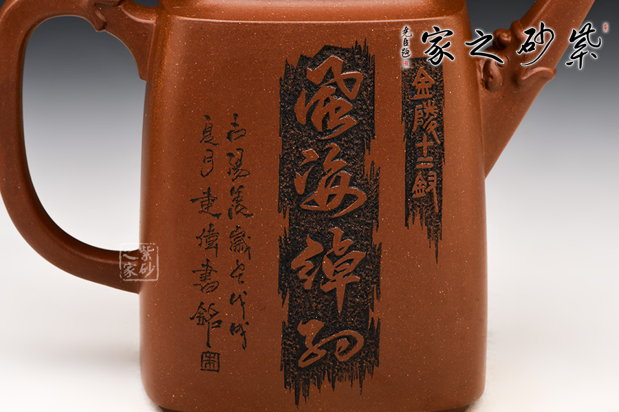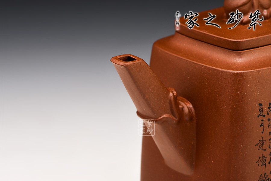 此壺為四方高壺,形體優(yōu)美,工藝嚴(yán)謹(jǐn),氣韻生動(dòng),整體透露出豪爽、剛勁、正直的陽剛之氣,達(dá)到方中有圓,圓中有方的感覺。