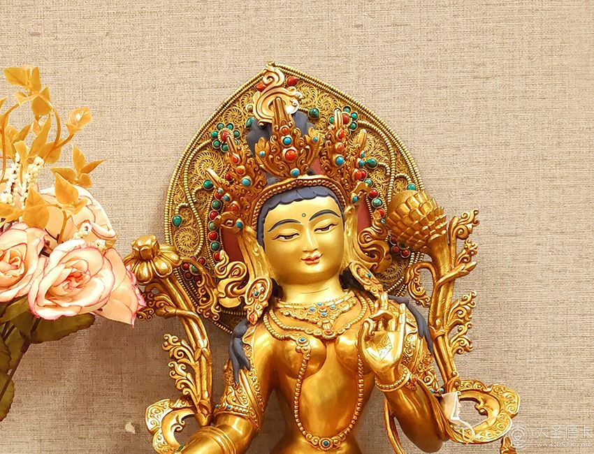產地:尼泊爾佛像 工藝:鎏金 創作年份:2020 題材:綠度母 繪制時間:0日 尺寸:*45cm 重量:0 g 材質:紫銅 使用場地: