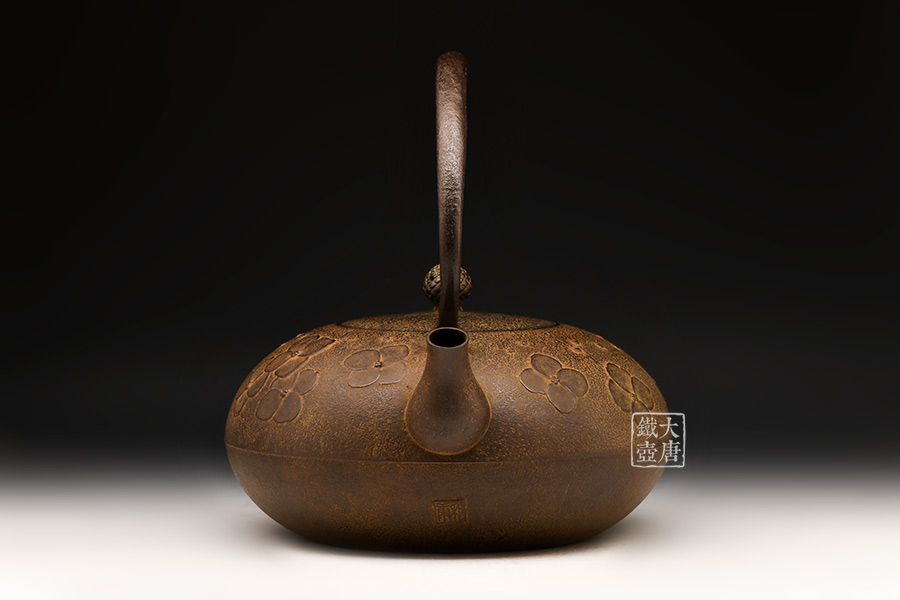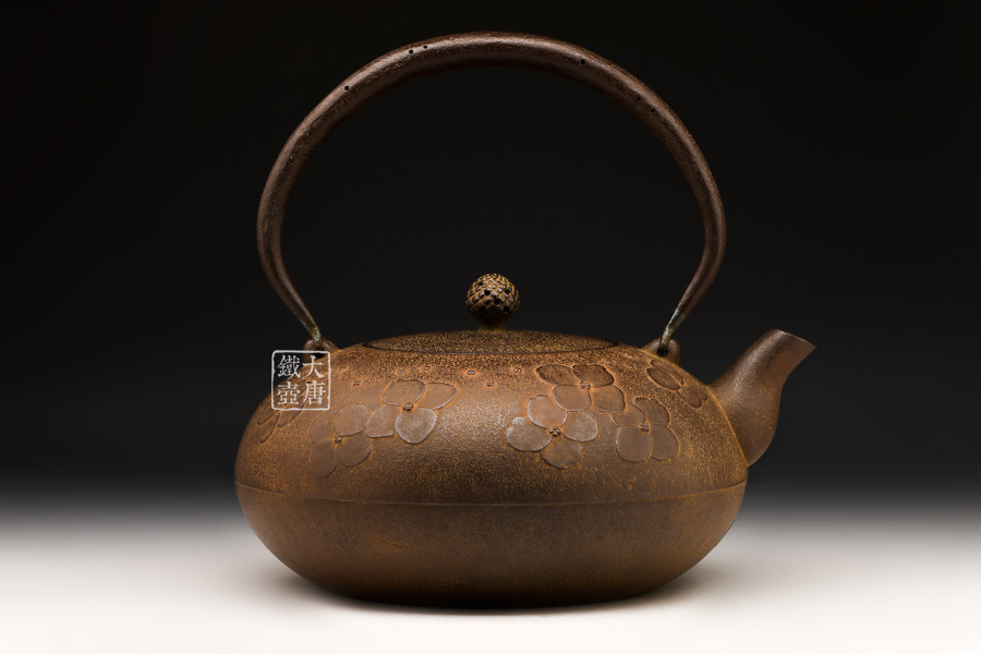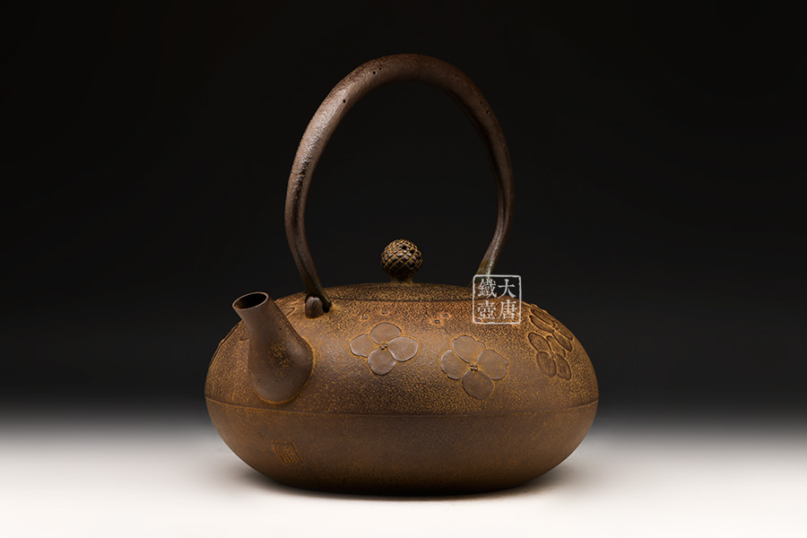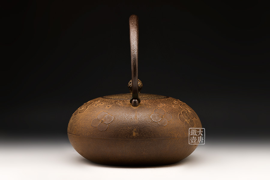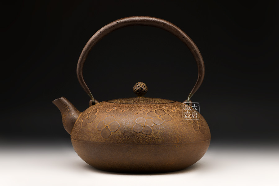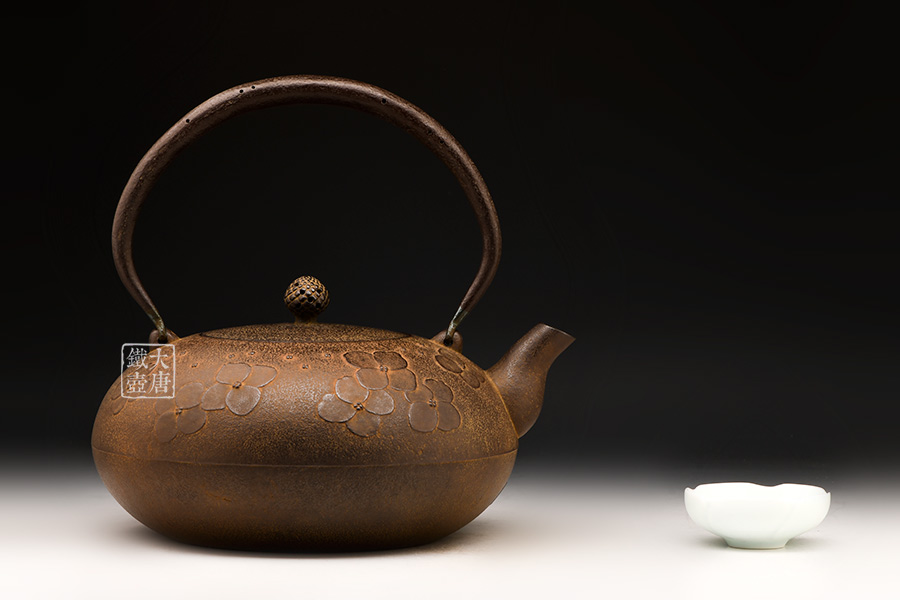 南部名家田山和康匠心手作,經(jīng)典平丸型,櫻花紋,整器圓潤(rùn)飽滿,鐵肌細(xì)膩潤(rùn)和,搭配夾把式蟲蝕提梁,大氣簡(jiǎn)約,雅致古樸。