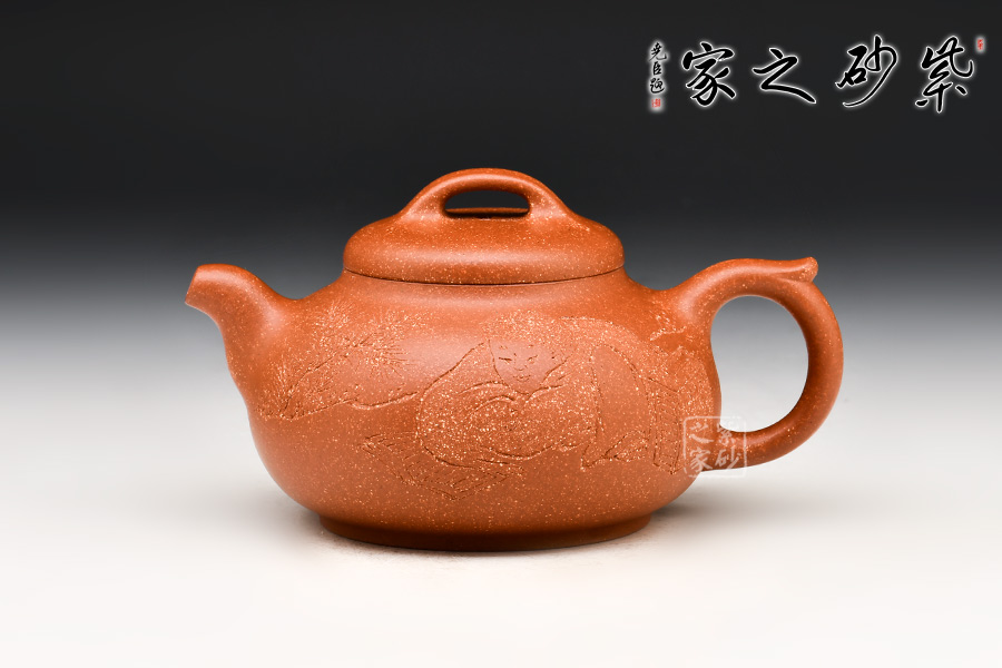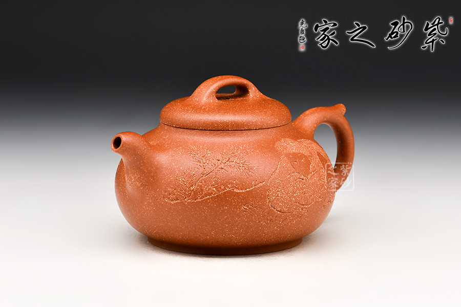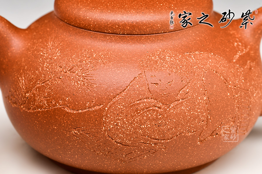 特點(diǎn):原礦因含緞泥、紅泥、紫泥等諸多共生礦,陶之后,于深沉之“橙紅色”底上,滿佈五彩斑斕的粗細(xì)、深淺之紅、黃星斑點(diǎn)。