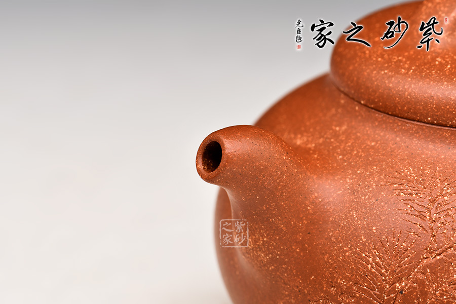 泥性:原礦因含緞泥、紅泥、紫泥等諸多共生礦,陶之后,于深沉之“橙紅色”底上,滿佈五彩斑斕的粗細(xì)、深淺之紅、黃星斑點(diǎn)。