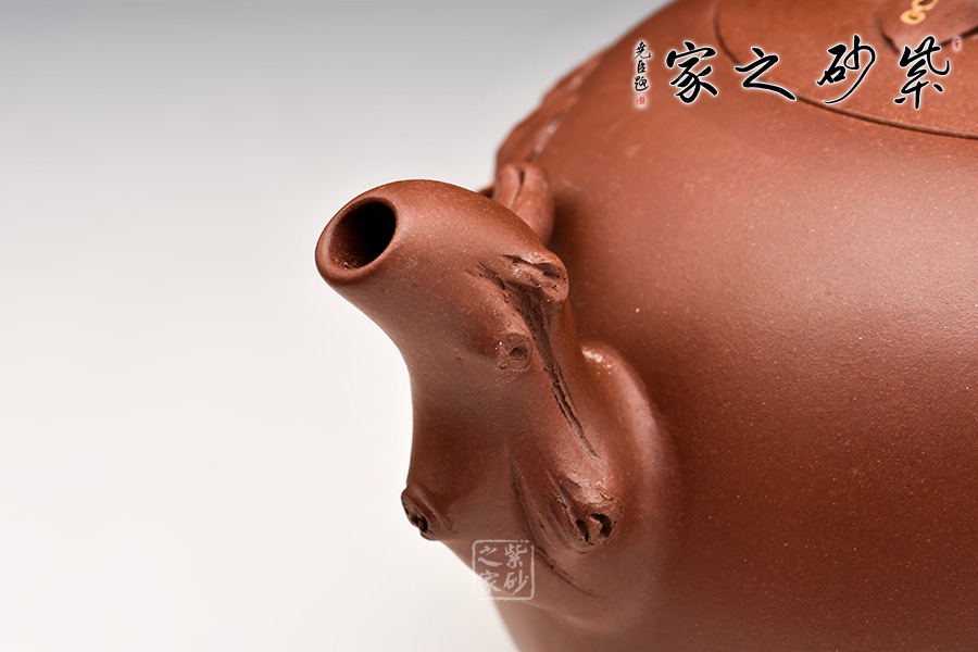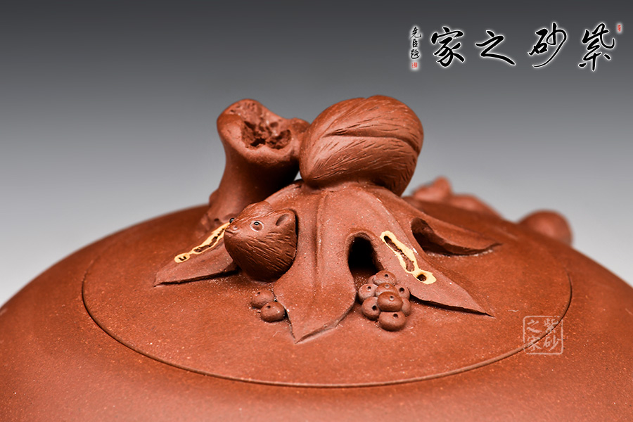 此壺將自然界的動植物融入到紫砂藝術(shù)當中,更加貼近生活情趣,觀之讓人感覺到大自然的生動氣息,心情舒適放松。