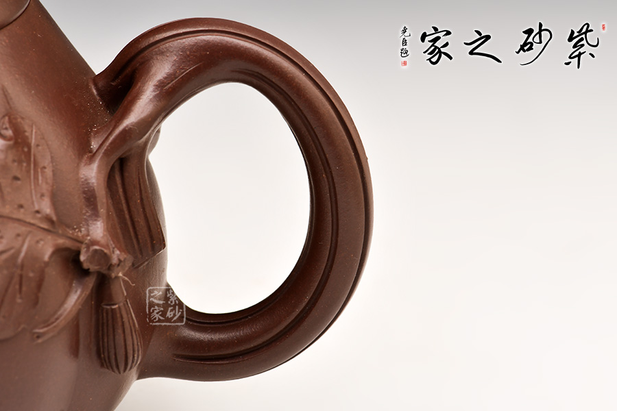 整壺瓜棱勻稱飽滿,蓋與身上下貫通,弧線優(yōu)美,和諧自然。