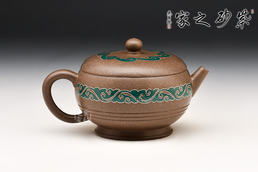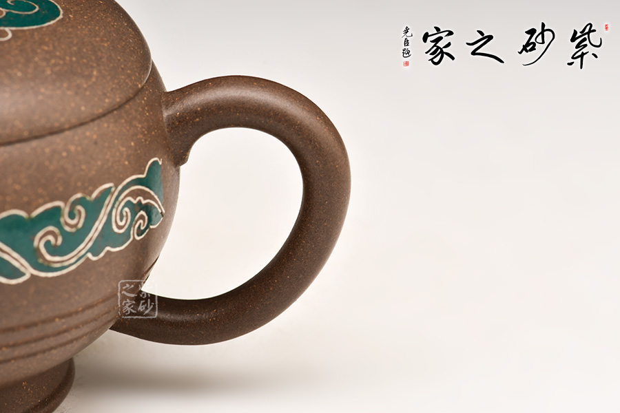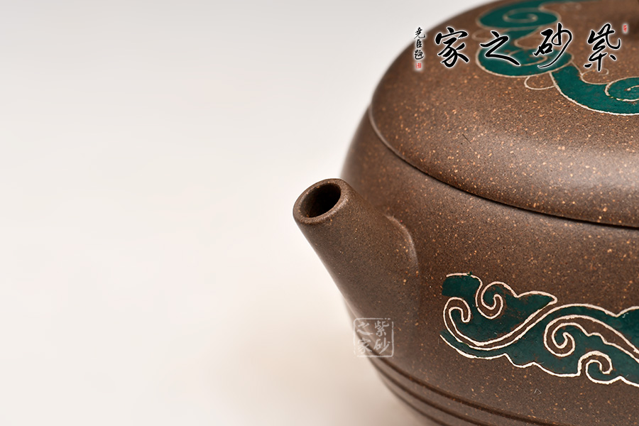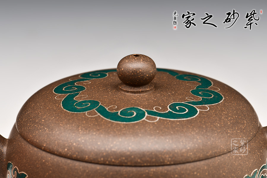 壺身和壺蓋皆有祥云裝飾,宛若玉帶橫亙,飄逸瀟灑,令人眼前一亮。