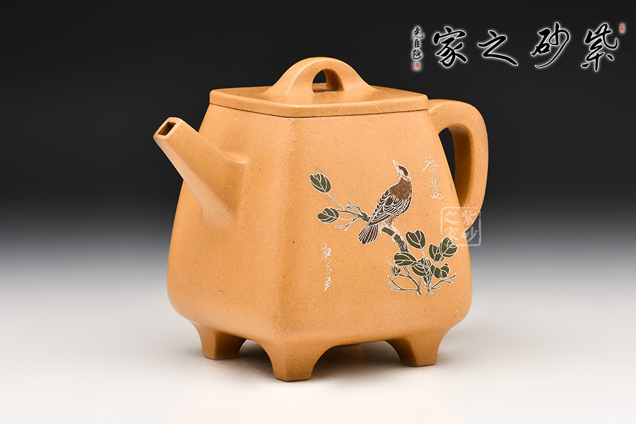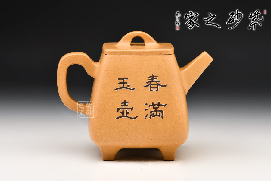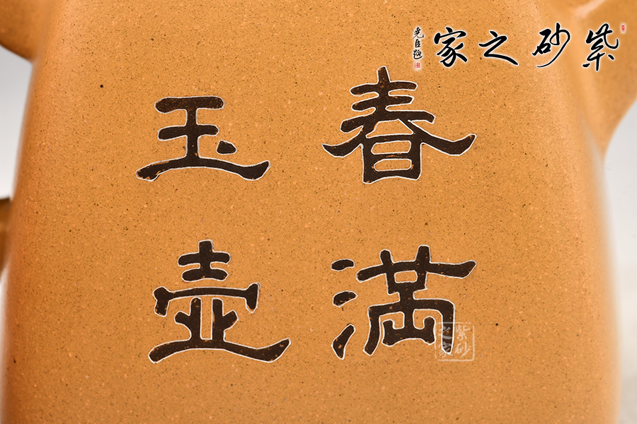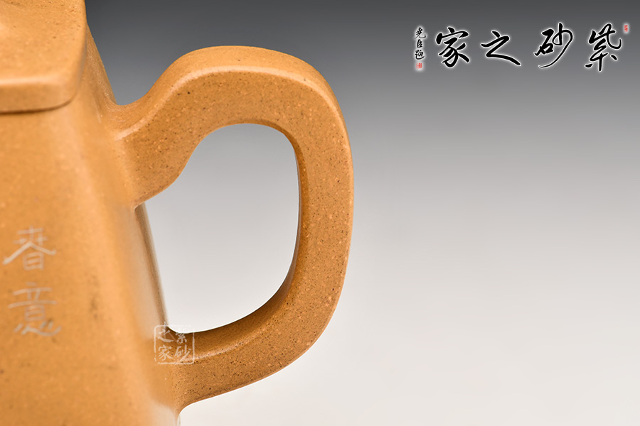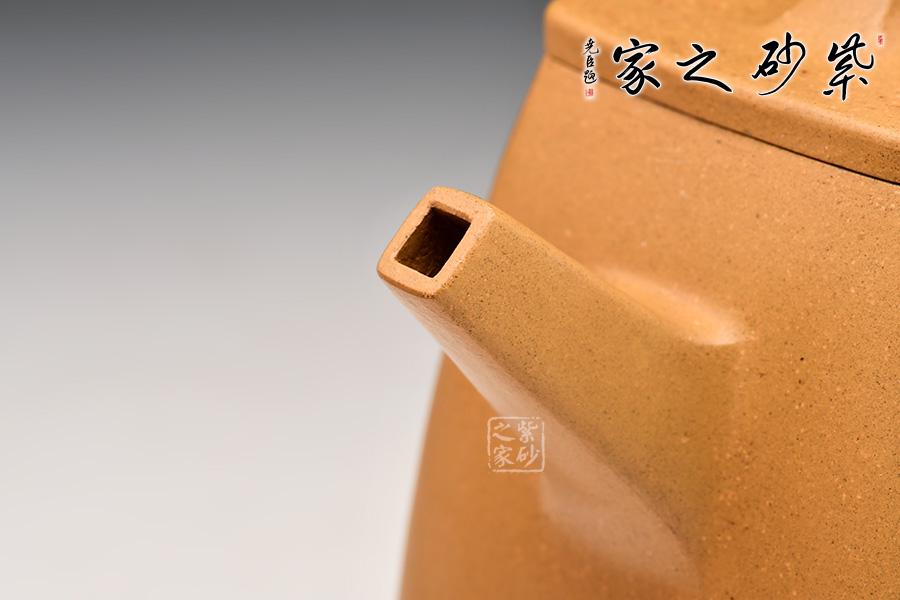 壺嘴直長,挺峭有力;方形耳把的造型與整體協(xié)調,給人渾然天成的自然美感;高乳足壺底更顯壺的神韻齊全,風度大氣,實用大方。