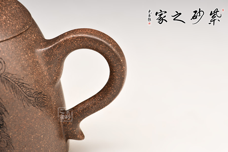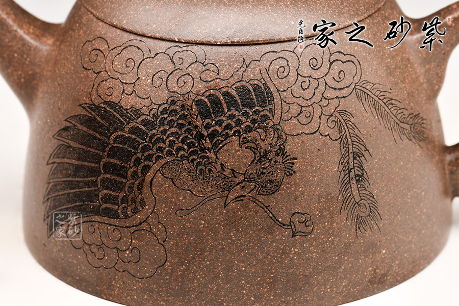 壺身正面繪刻“凰鳥腳踏祥云,銜如意而來”,后面繪刻“凰鳴”二字,意境相同,韻味雋永悠長。