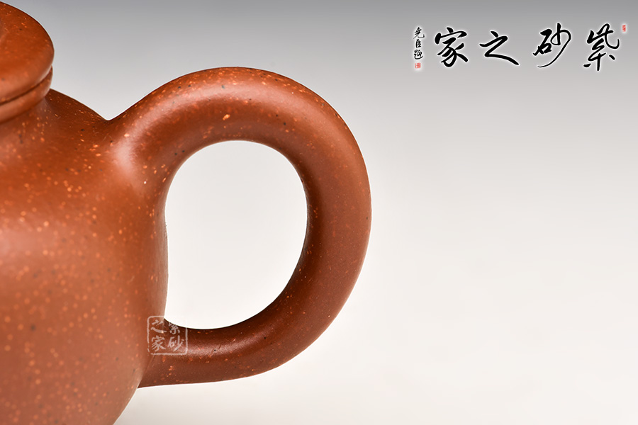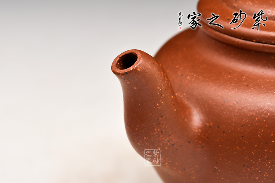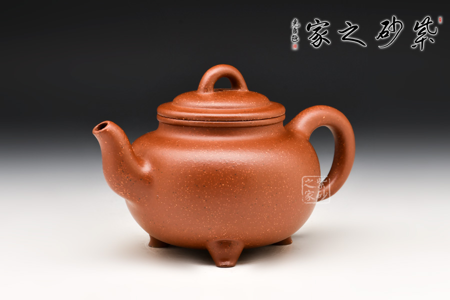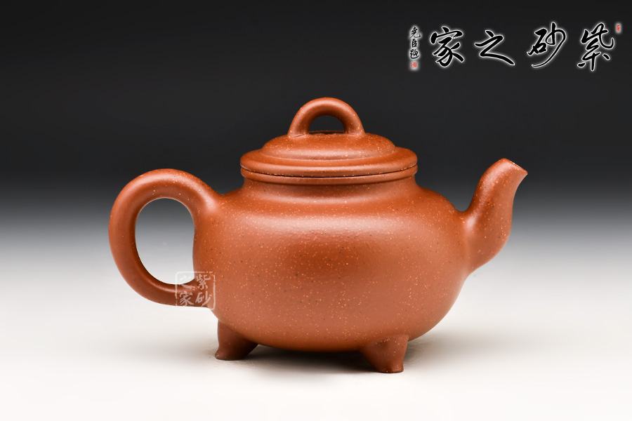 腹圓鼓飽滿,嘴彎曲有致,把圓潤成耳,蓋平緩攏起,鈕拱似小橋。壺底三足,穩(wěn)穩(wěn)托起壺身。整器造型古穆渾厚,簡練高貴,無論是品鑒把玩擺設(shè)均為工藝精品。