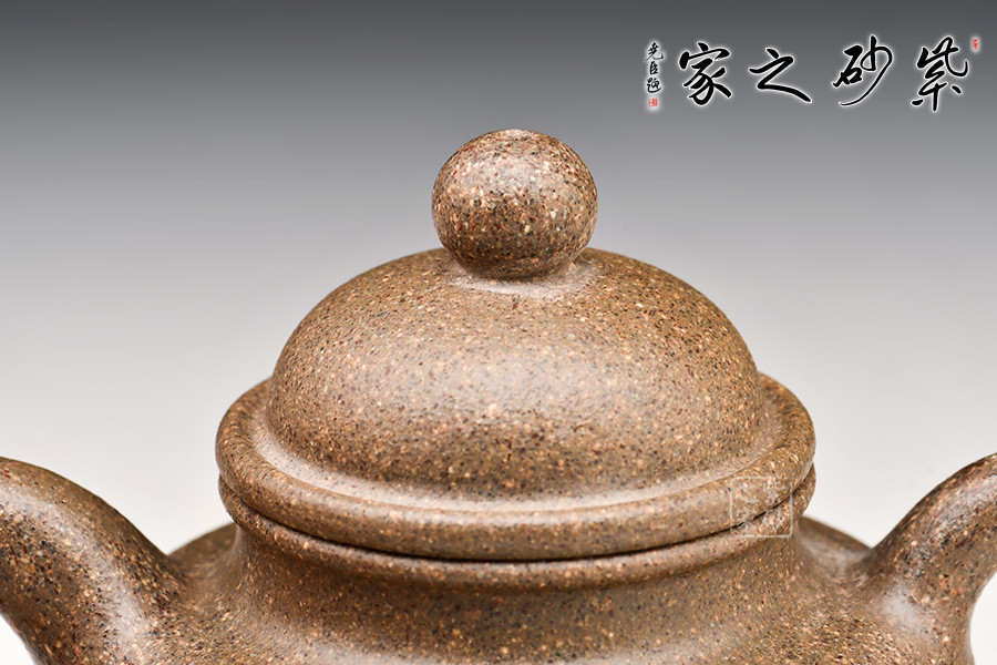 壺蓋呈飽滿的半球狀,壺鈕圓珠鑲嵌,張力十足。