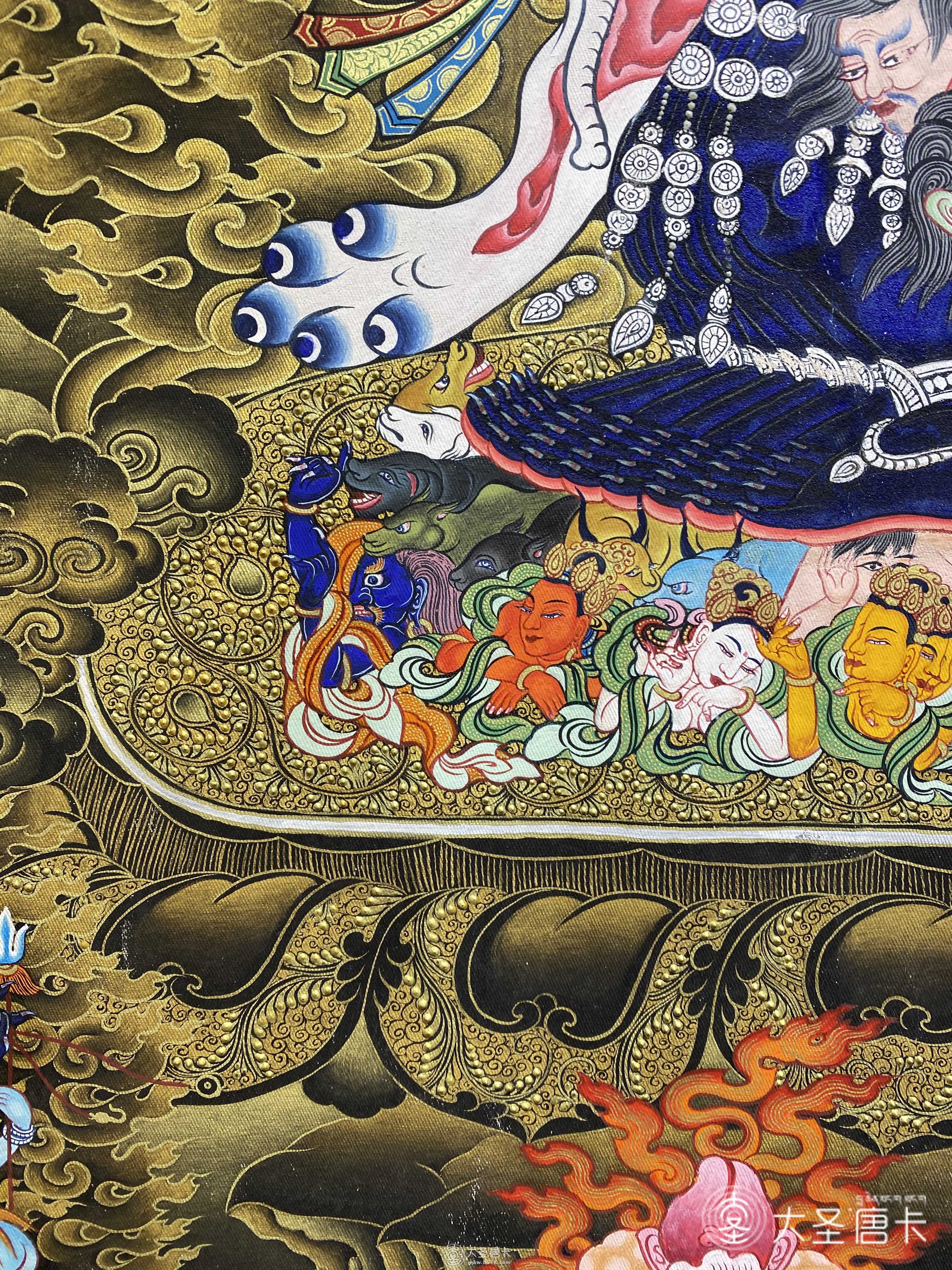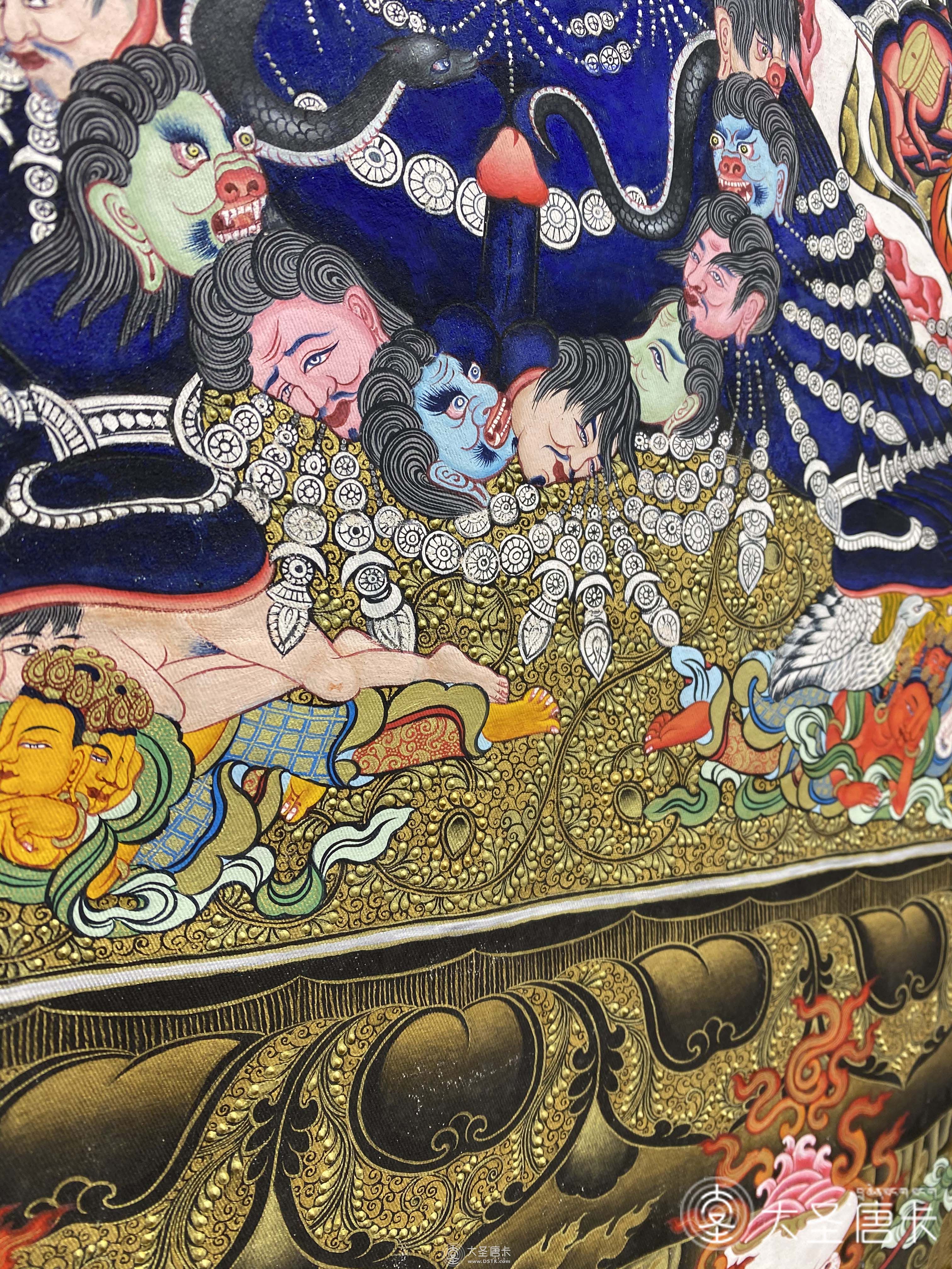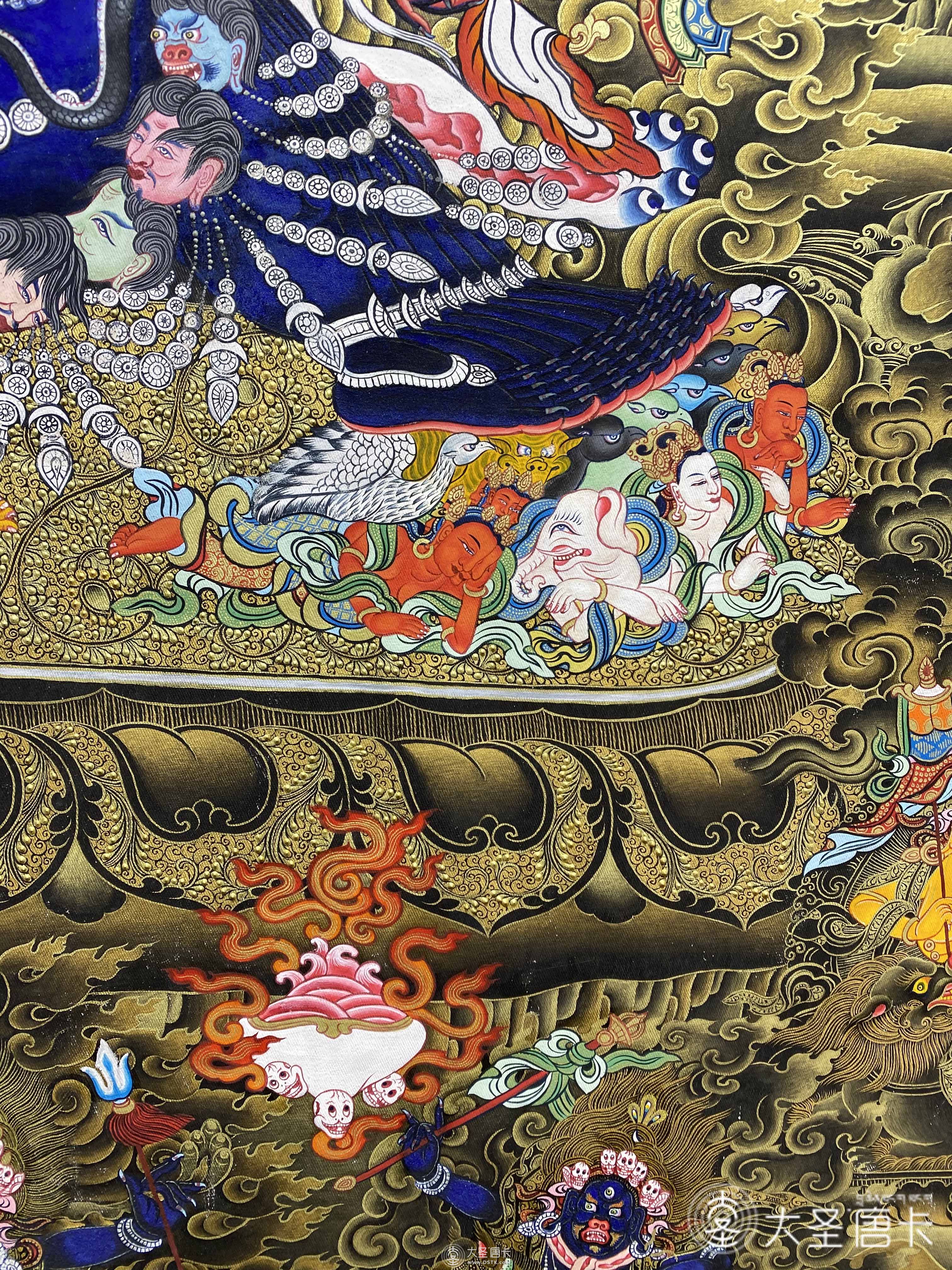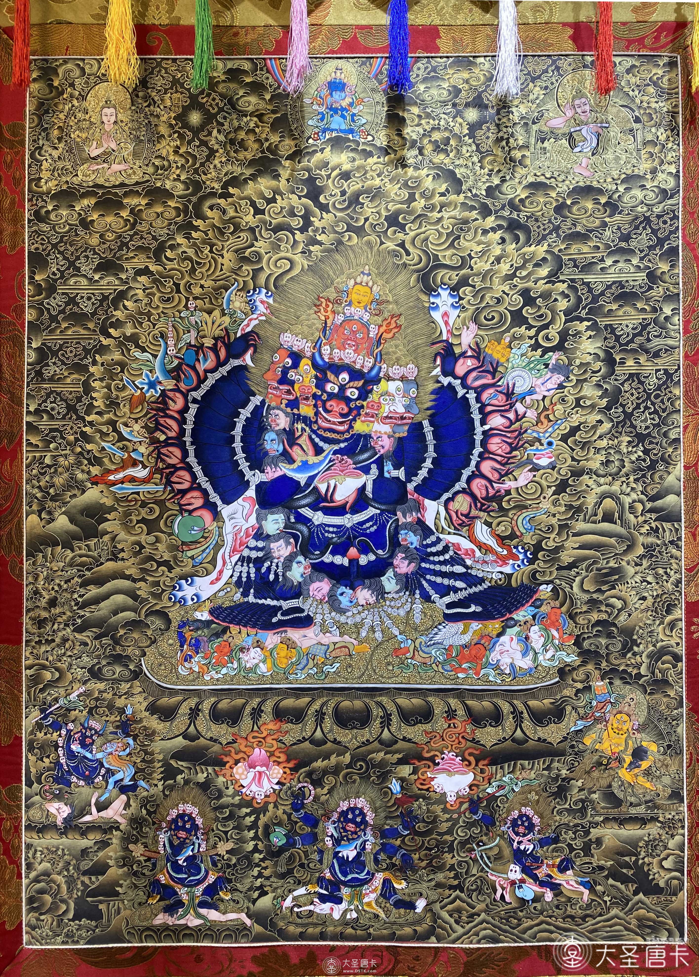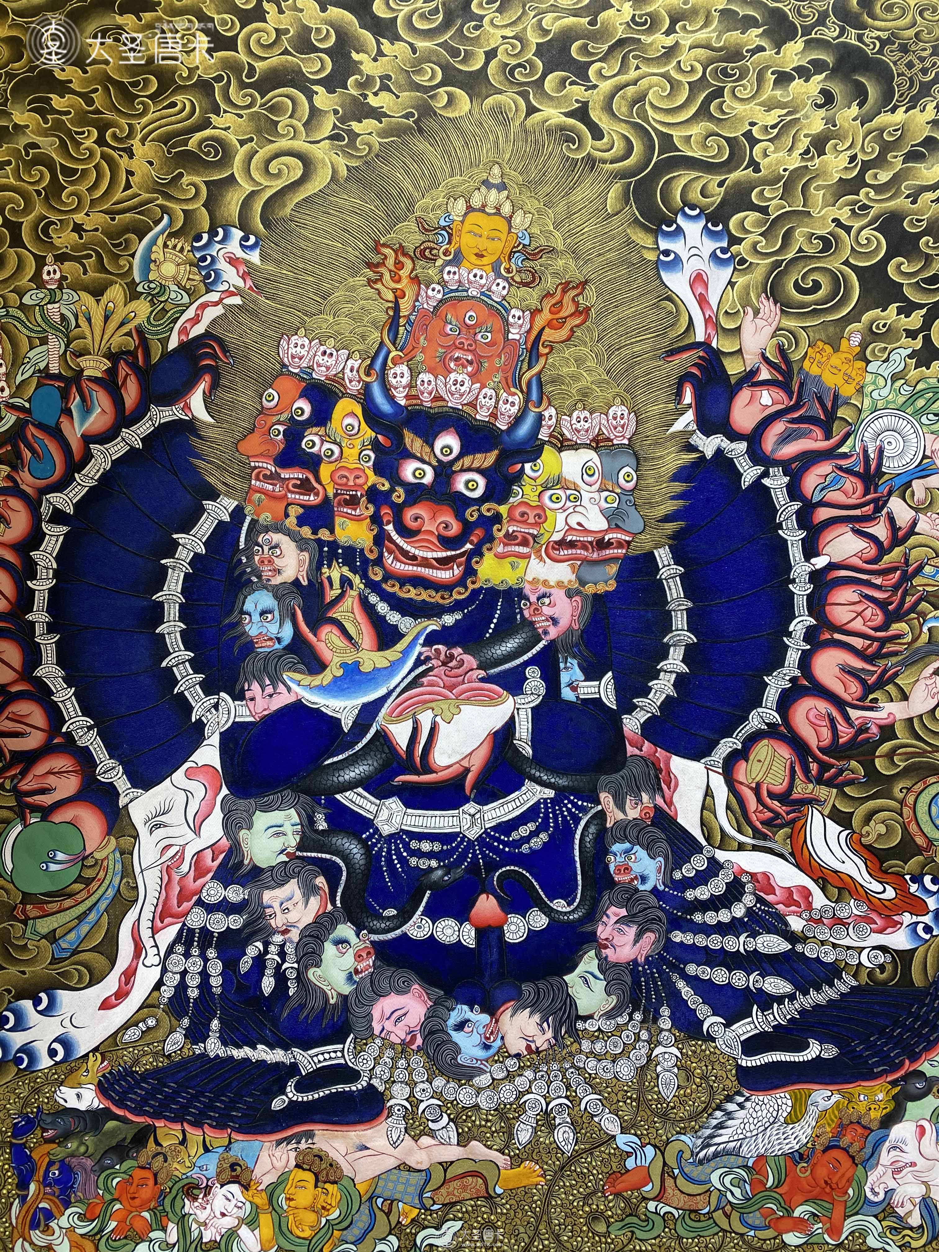 產地:熱貢 工藝:黑金 創作年份:2020 題材:大威德金剛 繪制時間:4月 尺寸:*62*85cm 裝裱: 材質:織面 使用場地:客廳