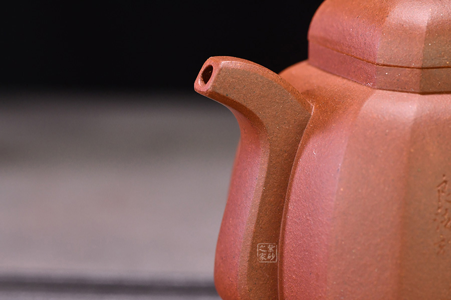 王福君老師所制紫砂壺皆非好泥不用,此壺爽凈精當,通體以“八”意呈現(xiàn),壺身以八個面圍成,成型難度升級,線條自壺蓋延伸至壺底,流暢自然,規(guī)矩有度。壺嘴、壺把線條呼應,順暢美觀。