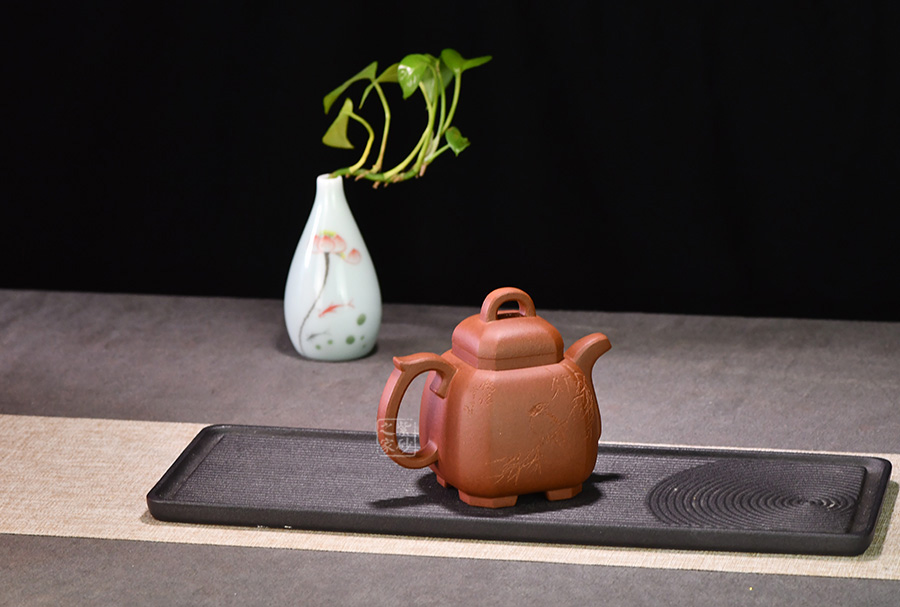 沖茗特性:溫和典雅,茶湯韻味悠揚、沉著持久,養(yǎng)泡日久,泥色由棕變幻為古黯肝色,愈顯古樸素雅,明潤光和也!