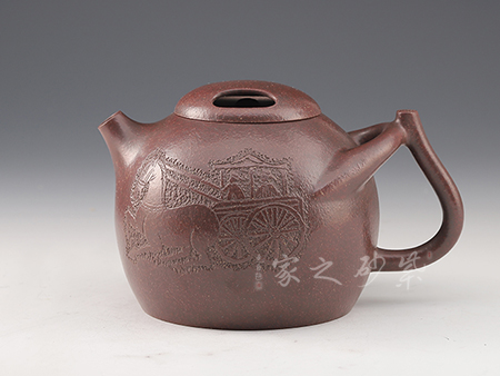 研究員級(jí)高級(jí)工藝美術(shù)師王福君老師所制的清泉壺色澤醇和深邃,溫潤(rùn)討喜。經(jīng)由實(shí)力陶刻師孔良法雙面裝飾,更具收藏價(jià)值。