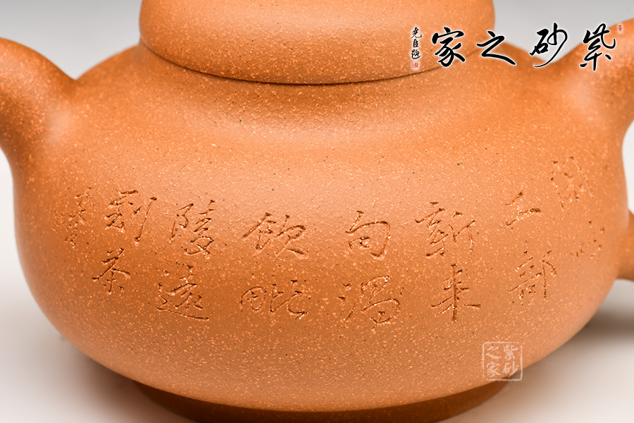 光貨離不開裝飾。俗話說“壺隨字貴,字隨壺傳”:光壺不刻字,就是一把光壺;壺上面刻了大師、名人的字,一把壺的含金量就高了,收藏價值就更高,升值潛力就更大。王福君與中國工藝美術(shù)大師譚泉海合作最多,其次是徐安碧、鮑志強、毛國強(均為中國工藝美術(shù)大師、中國陶瓷藝術(shù)大師)。