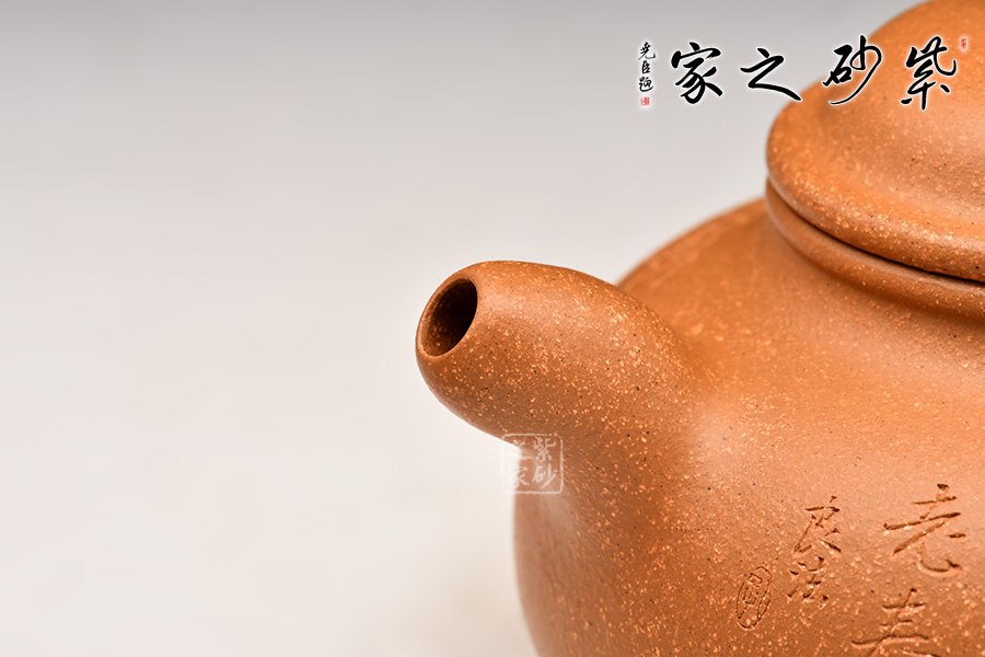 整壺頗有返璞歸真之勢(shì),體現(xiàn)了所用泥料原礦黃金段本真的魅力!