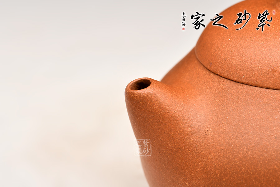 泥性:原礦因含緞泥、紅泥、紫泥等諸多共生礦,陶之后,于深沉之“橙紅色”底上,滿佈五彩斑斕的粗細、深淺之紅、黃星斑點。