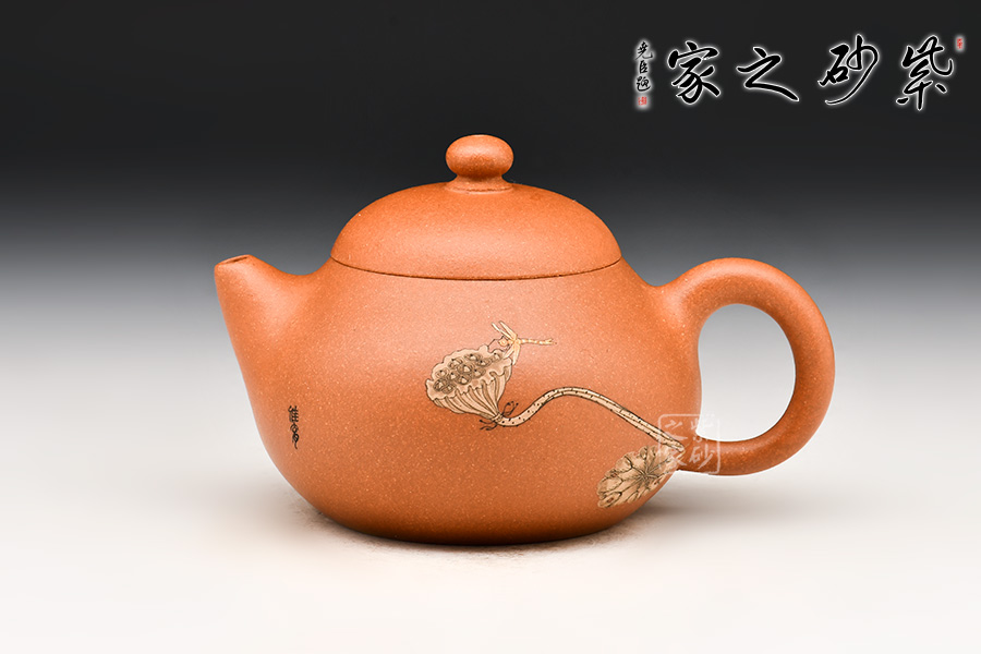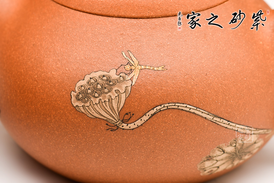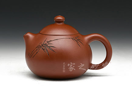 整器圓潤質(zhì)樸,柔若無骨,加上壺身繪刻,更添文人氣韻。