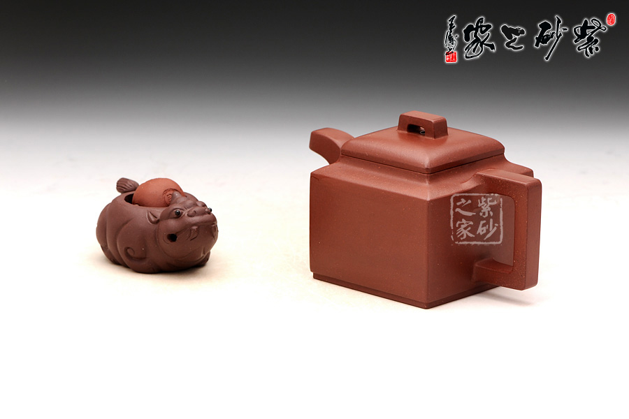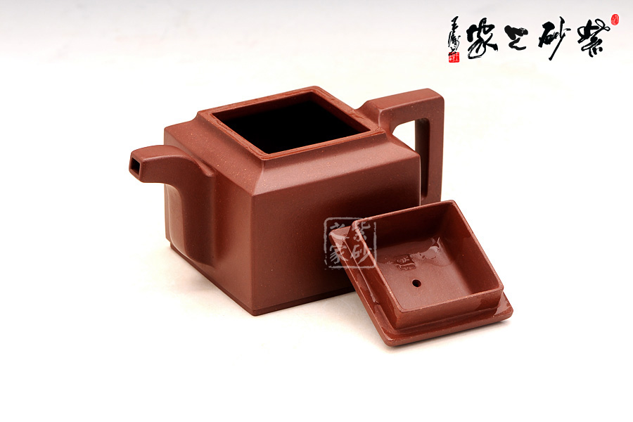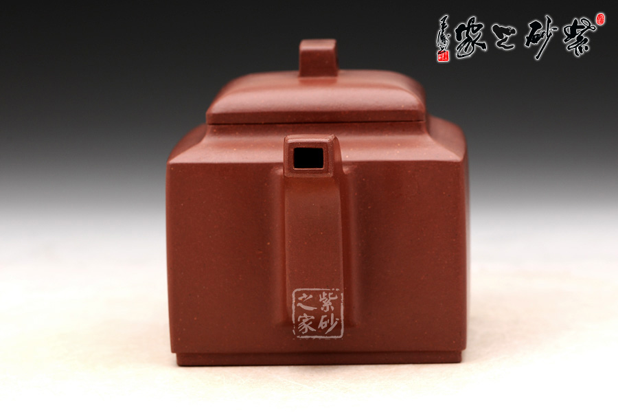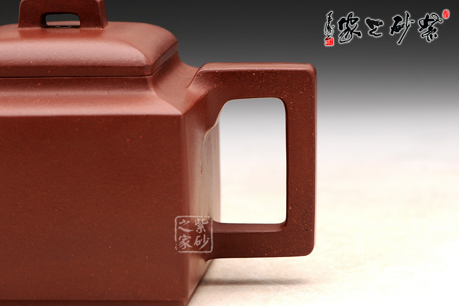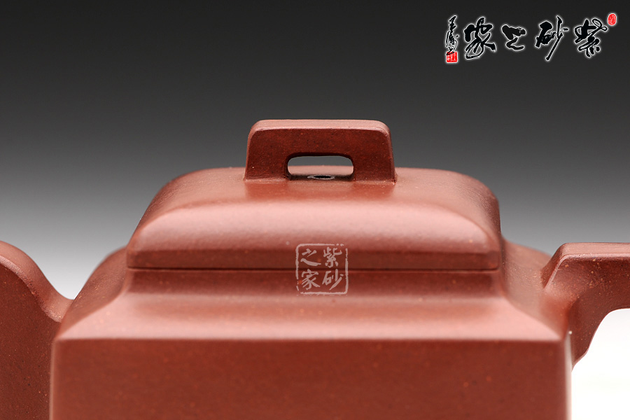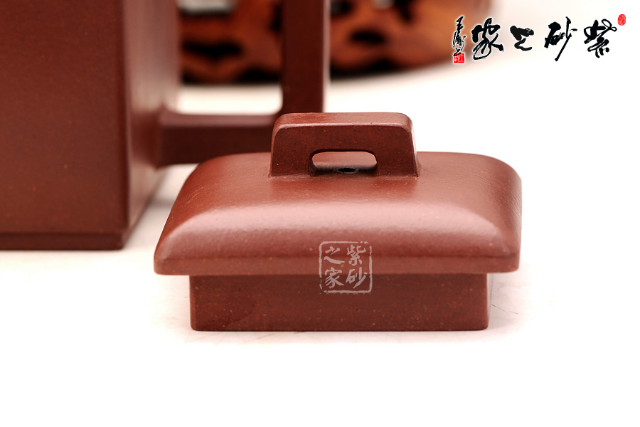 壺蓋四方形干脆利落,蓋面飽滿,方形橋鈕大氣精巧
