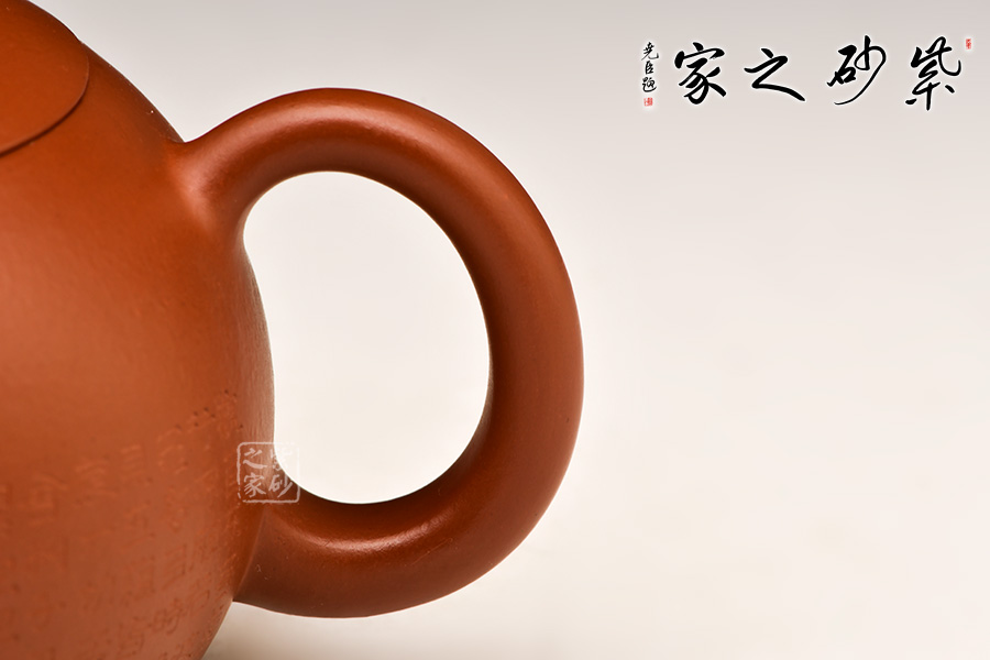 壺流與把和諧對稱。壺把上小下大,上薄下厚,自然流暢。