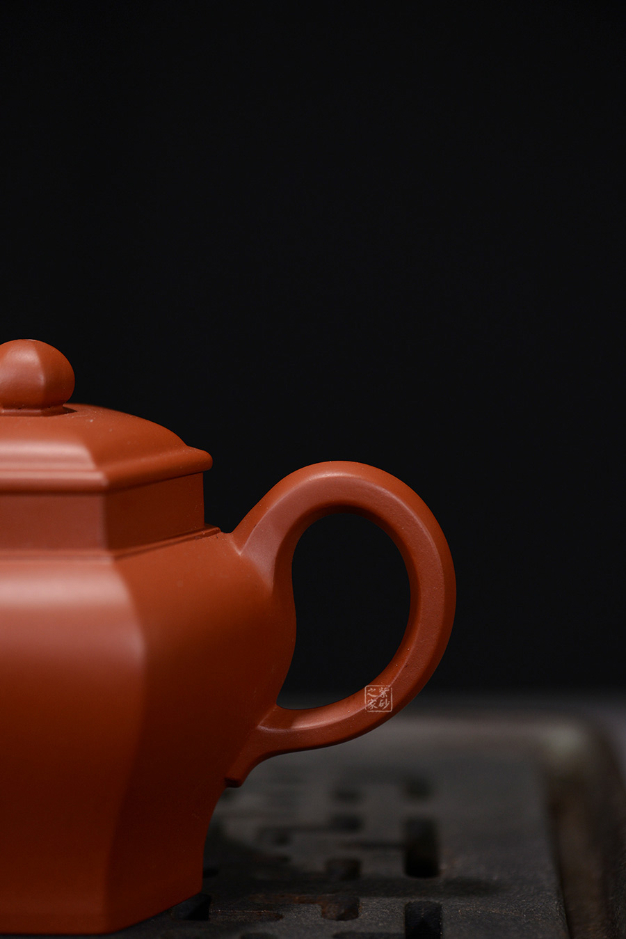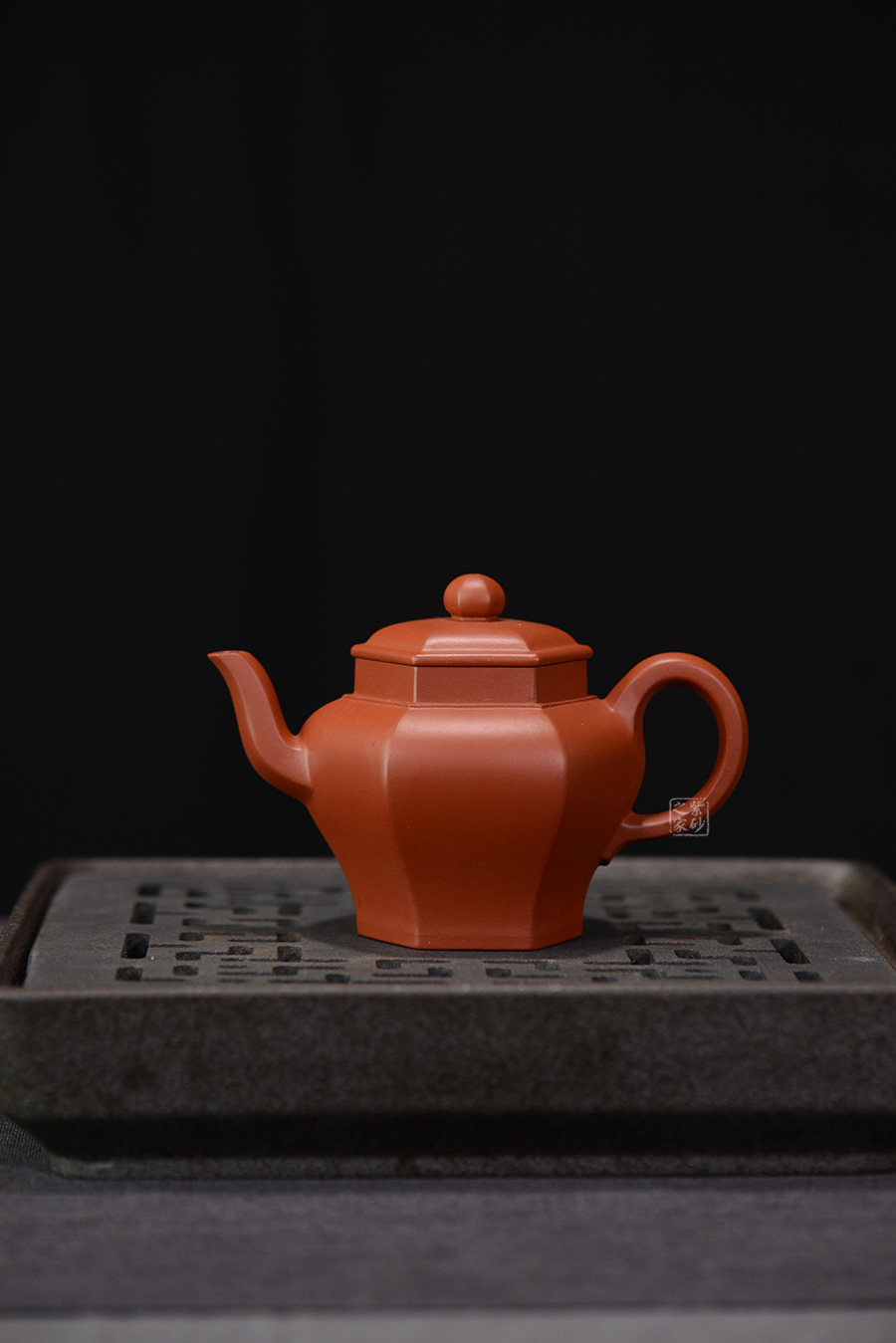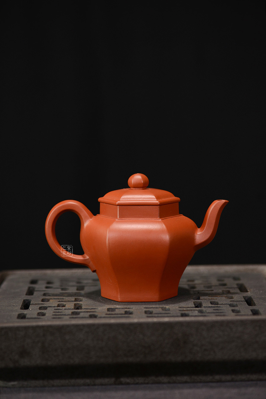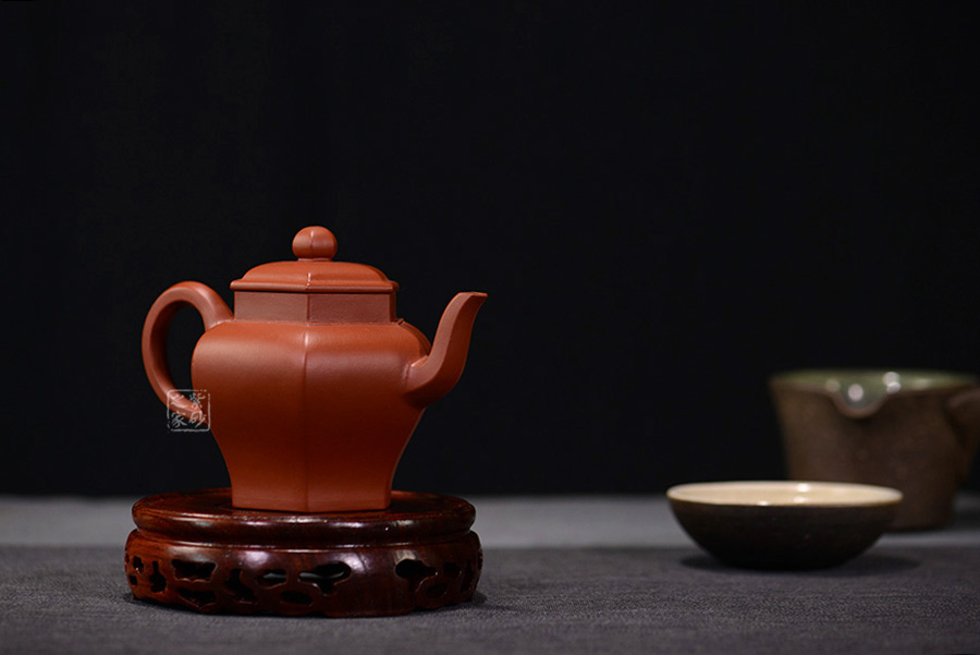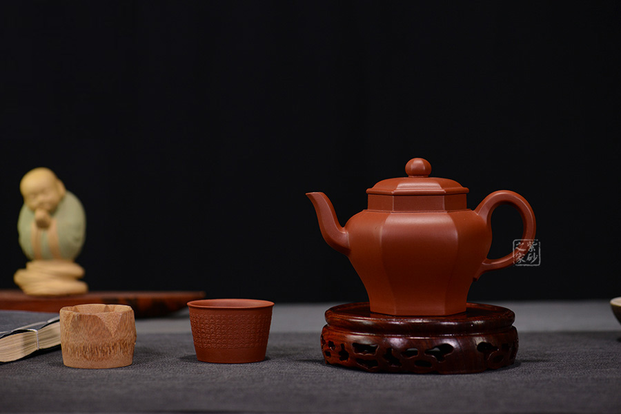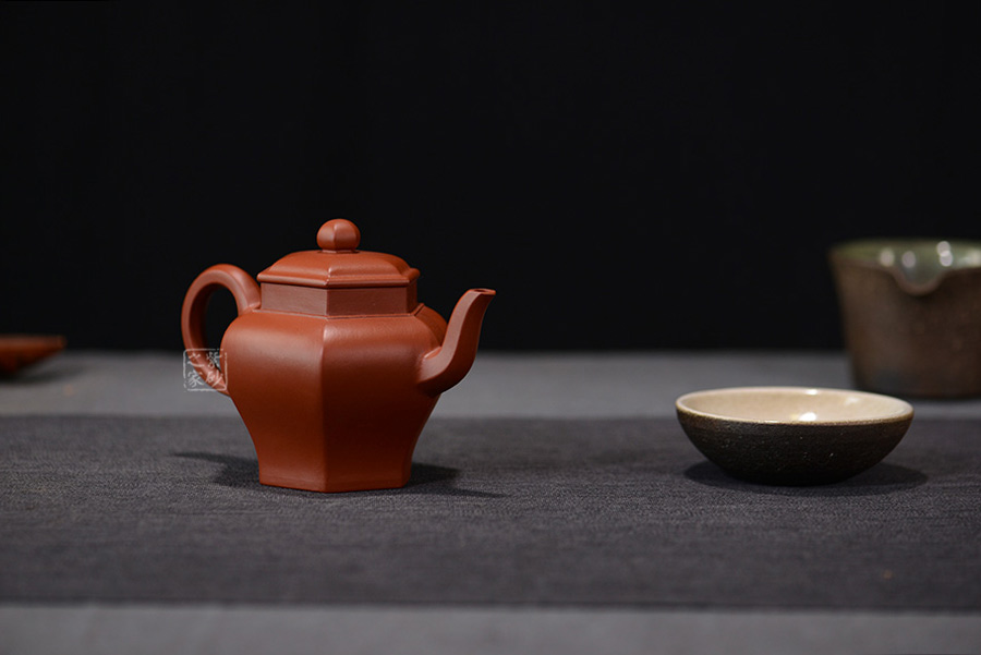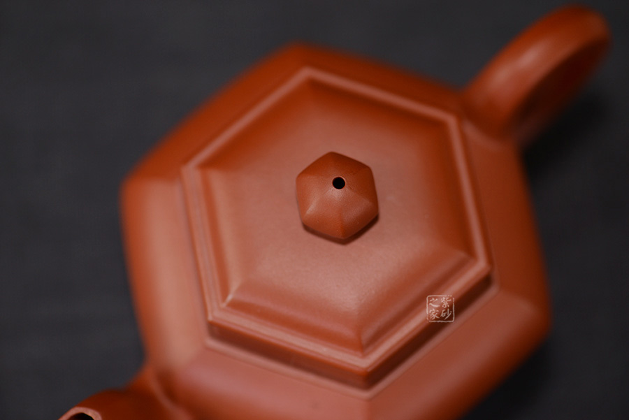 六方宮燈壺為方器造型中的六方壺型。該壺整體大氣端莊,將六方形態(tài)貫穿壺型始終,不僅方中藏圓、線面挺括平正 、輪廓線條分明,更給予人們干凈利落、明快挺秀之感。