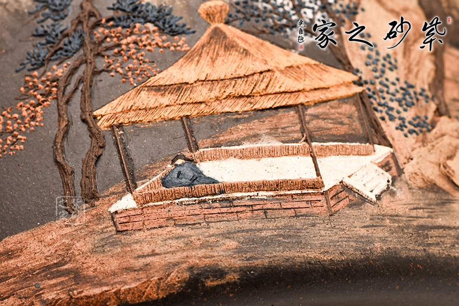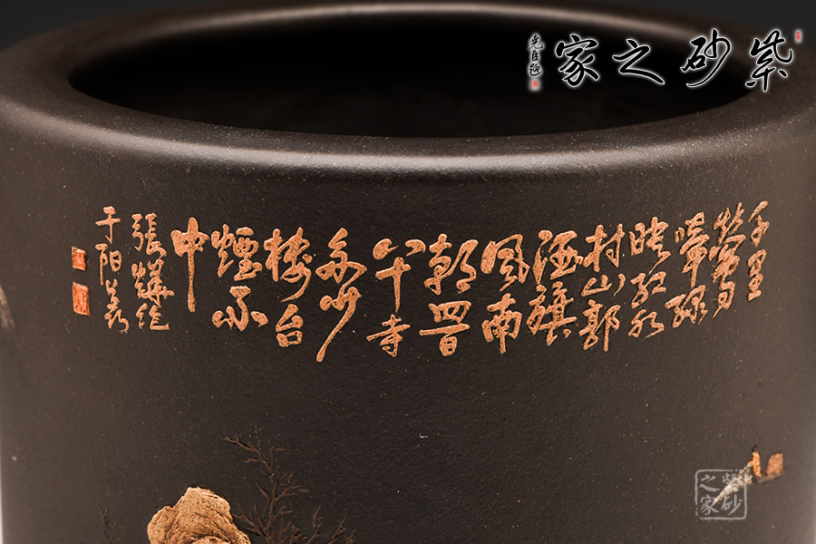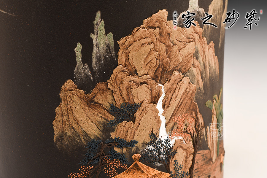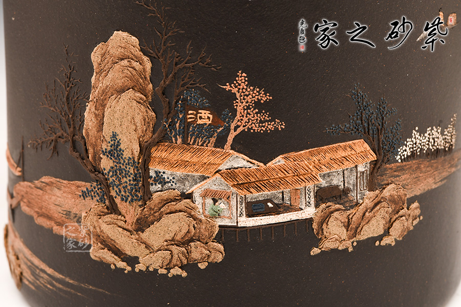 作品布局精妙,筒身畫面意境相連,氣脈暢通無窮,文人雅士情懷灑落的山水生活,被細膩的泥漿表現(xiàn)得淋漓盡致,雖不能至,心向往之!