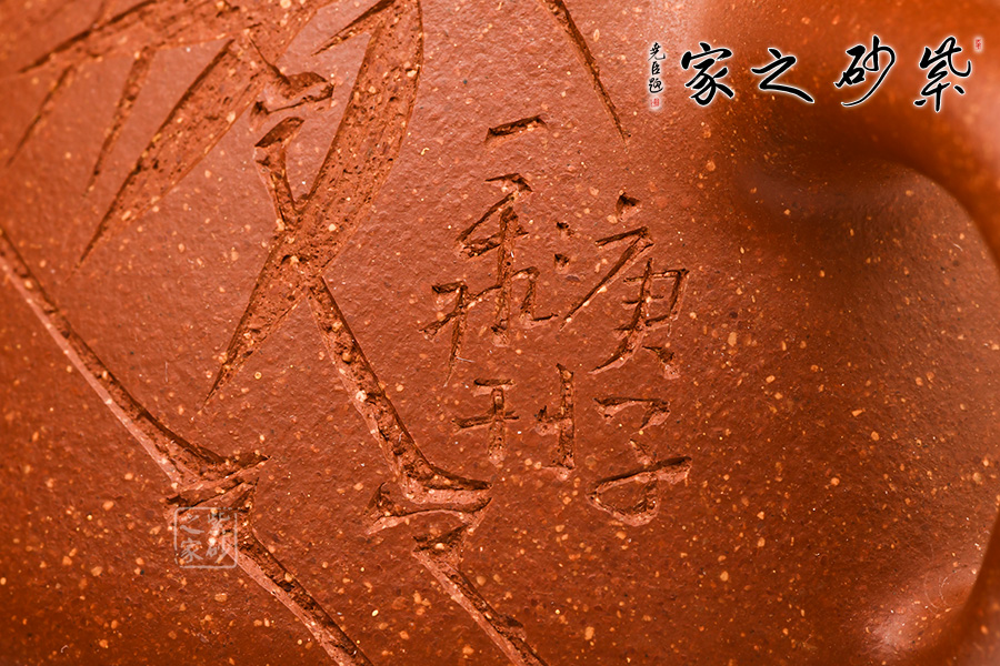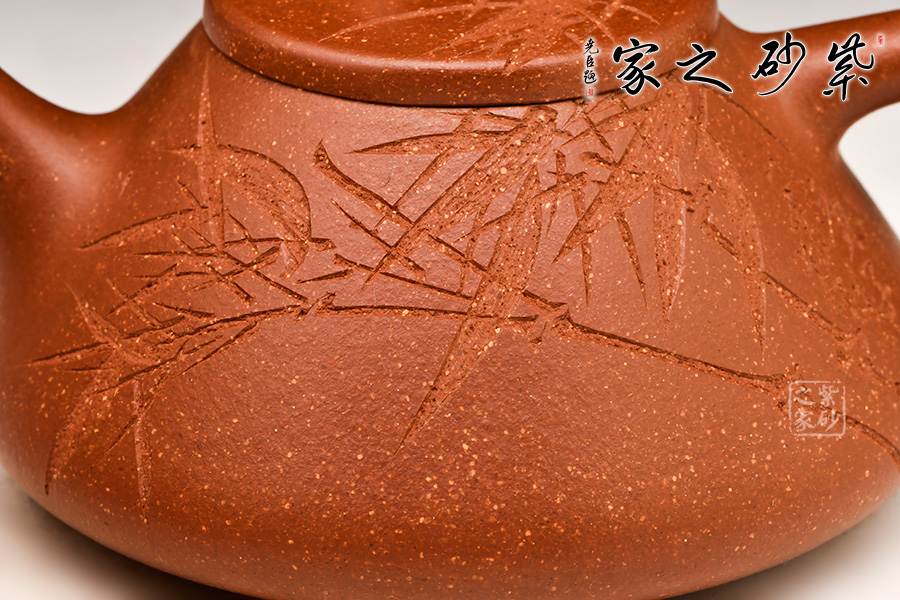 實力陶刻師劉一飛繪刻,身前身后翠竹舒展,勃勃生機。