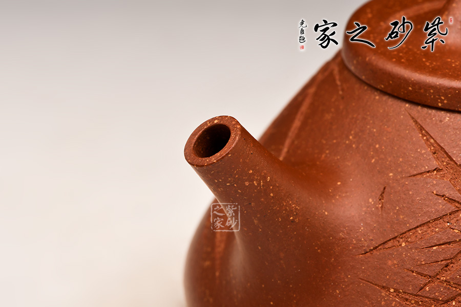 泥性:原礦因含緞泥、紅泥、紫泥等諸多共生礦,陶之后,于深沉之“橙紅色”底上,滿佈五彩斑斕的粗細、深淺之紅、黃星斑點。