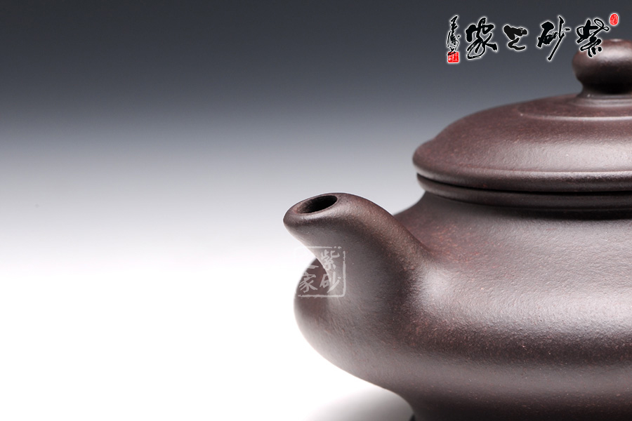 此壺端莊大氣,飽滿大度的壺體,給人以有容乃大的大家風范和氣度,堅挺的流有挺拔向上的氣勢,流暢的把又具圓滑中庸之取向,端莊,圓潤,飽滿,不媚不俗,高貴之氣盡于無言之中。簡約有章,厚重中略顯莊嚴樸實。