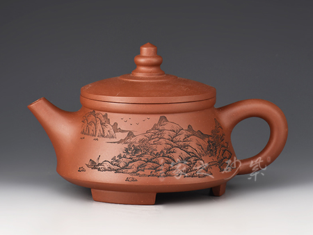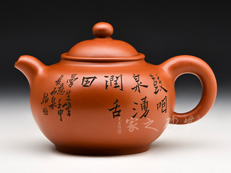 A面: 裝飾: 素刻詩詞 裝飾者:喻繼高 裝飾內(nèi)容: 壺身正面篆刻的是“清香”兩個字,筆觸蒼勁,靈秀俊逸。