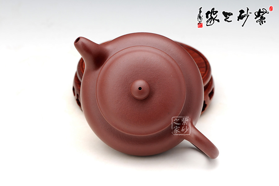 壺身略微扁圓形,平肩襯托之下更覺(jué)壺身扁平,端莊若大家閨秀。圓潤(rùn)的的子與壺身一致,應(yīng)和之下韻味十足。口蓋子母線精確地將壺蓋、壺口分割開(kāi)來(lái)。大口蓋,大氣十足。