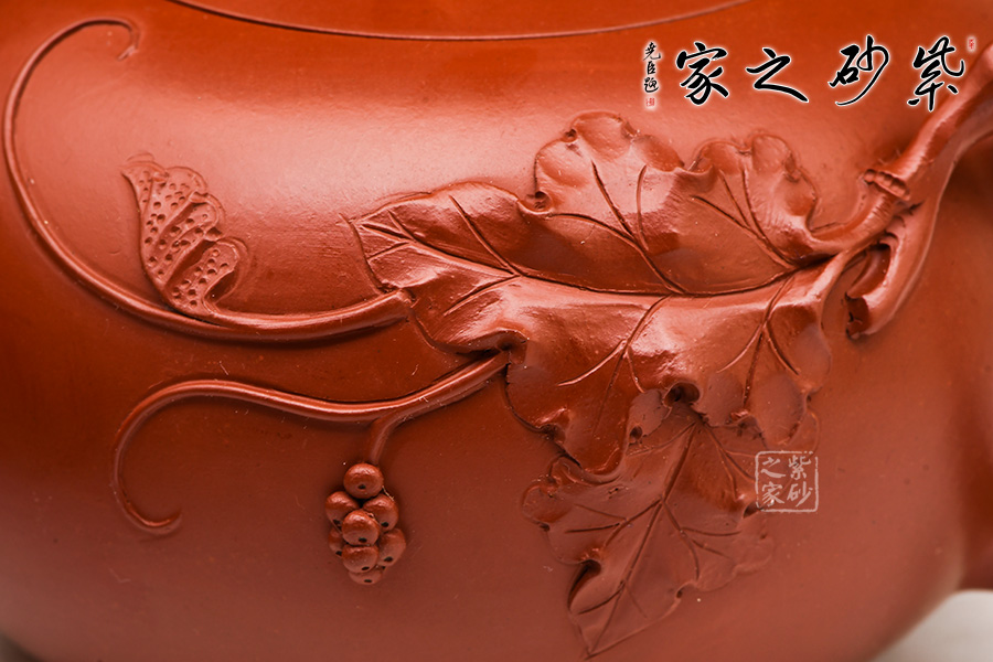 特點(diǎn):質(zhì)感綿密、緊實(shí)細(xì)緻,持之扎實(shí)沉重、紅潤豔麗,泥中極品,無以倫比;泥胚含少許原礦顆粒,沖淋熱水后色變極大,呈紅中帶紫,養(yǎng)壺易現(xiàn)“包漿”之美。