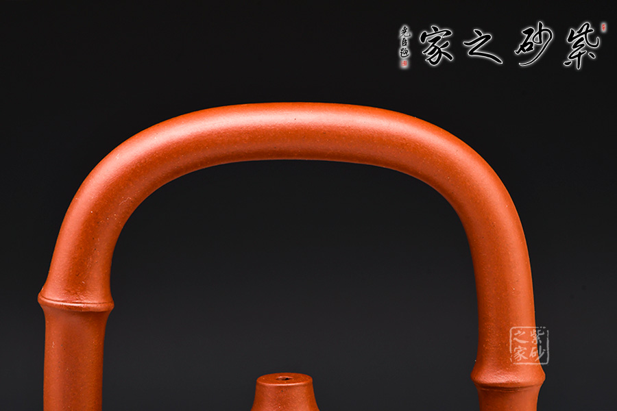 此款全手工竹韻提梁壺,采用原礦紅皮龍制作,泥色紅艷,質(zhì)樸拙雅,美冠群倫,將竹的清秀雅麗展露無(wú)遺。