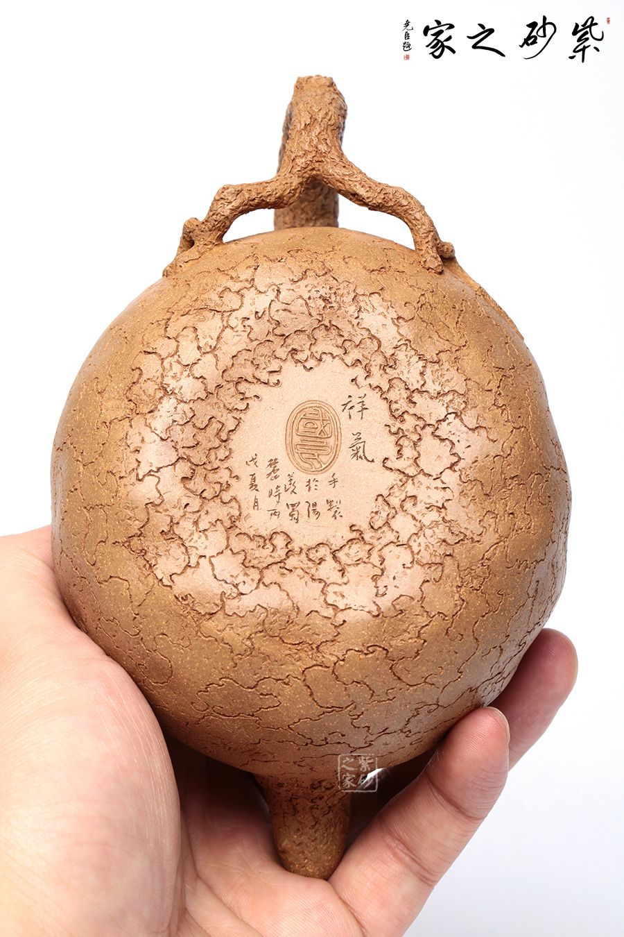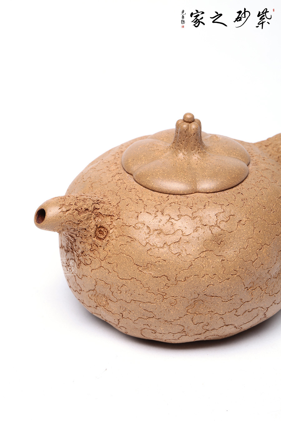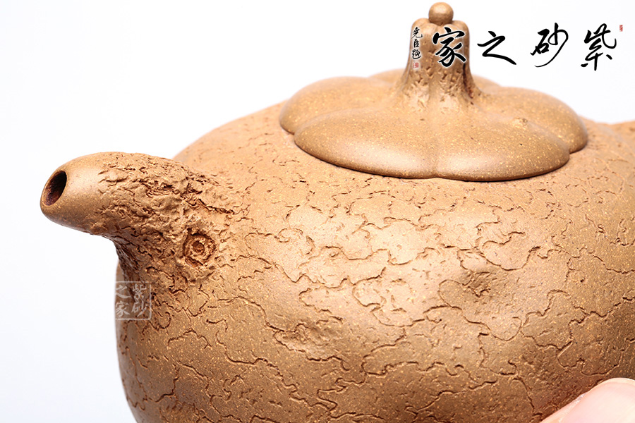 泥性:感甜嫩綿密,質(zhì)堅(jiān)而溫潤,呈近田黃色調(diào),為江蘇宜興趙莊山系朱泥礦~黃石黃之共生礦,經(jīng)挑揀練製而成,因含鐵量只達(dá)6%左右,致陶之后呈“金田黃色”。