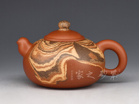 特點(diǎn):塊狀中有青綠色的"雞眼"、"貓眼"、色呈偏紫泛青,細(xì)而純正,   十分稀少.燒成的壺呈現(xiàn) 紅豬肝色,燒成顏色具體要看礦料的成分構(gòu)成和燒成溫度。