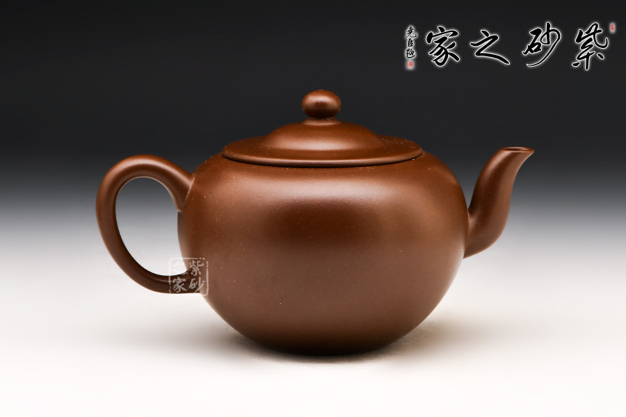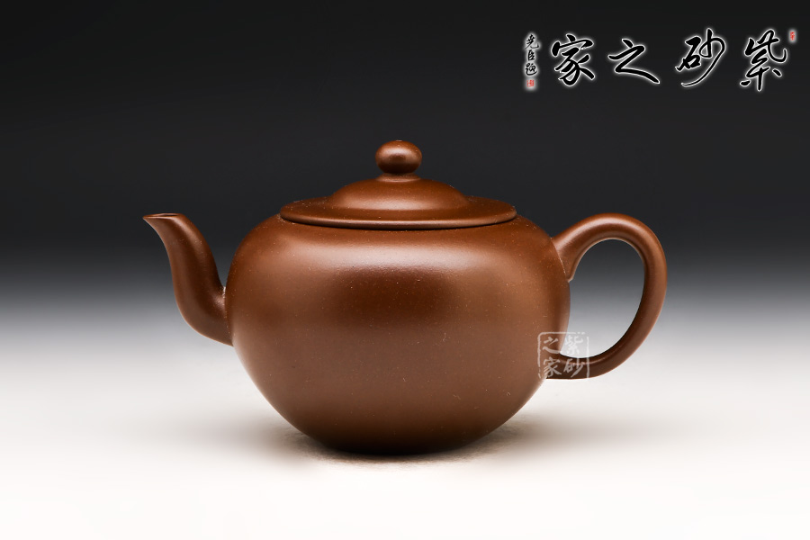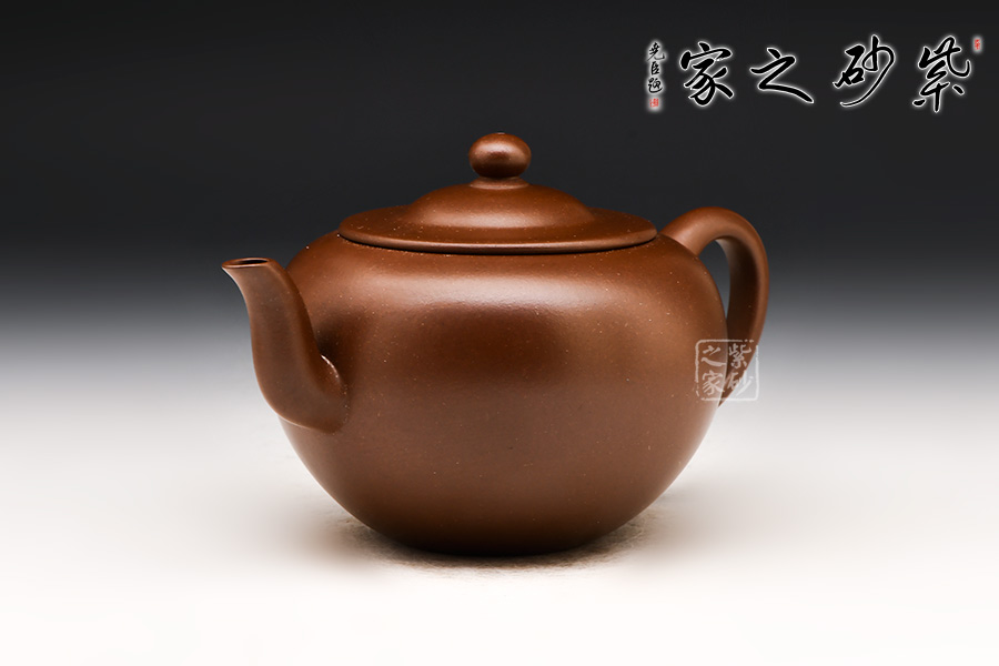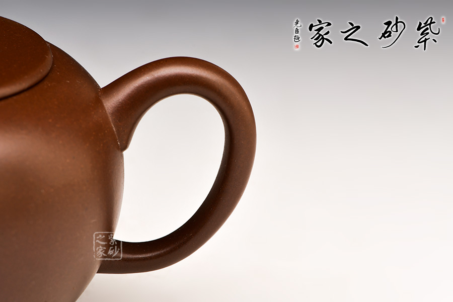 圓燈壺以圓形壺身為基準,將其逐漸拉伸成上大下小似圓錐形。壓蓋平整,蓋上圓珠鈕亭亭玉立。彎流嘴與耳形把前后相應(yīng),更突出了壺身的線條流動感和立體感。