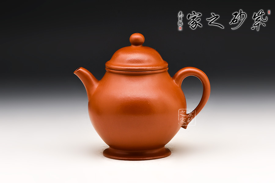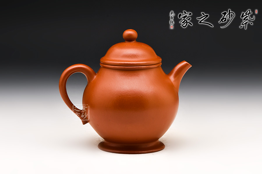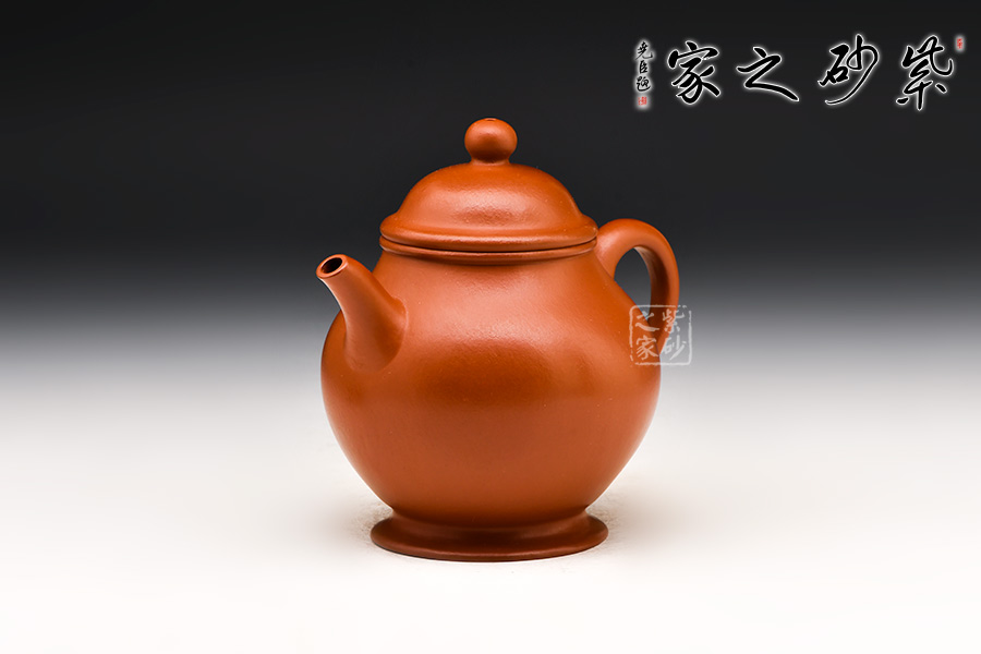 范忠君,宜興丁蜀鎮(zhèn)陶藝世家。此壺精選朱泥原礦,胎骨堅(jiān)硬沉實(shí),色澤朱紅略泛桔光,溫潤(rùn)透明、質(zhì)感之佳,與清中期頂級(jí)朱泥無異;小品燒成后穀皺紋隱現(xiàn),頗具古代朱泥風(fēng)華;熱水沖淋立展嬌嫩鮮紅特色,壺身游移紫光遽現(xiàn),神秘迷人風(fēng)韻令愛壺人神醉。