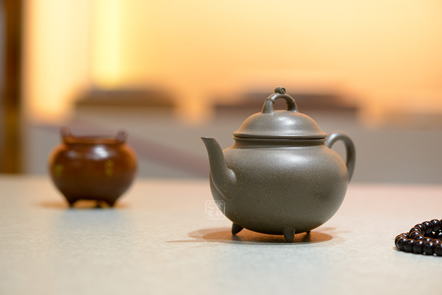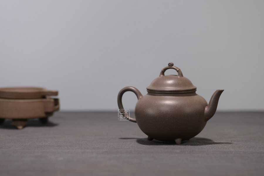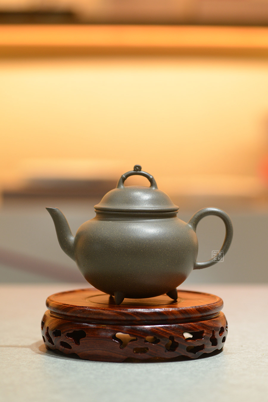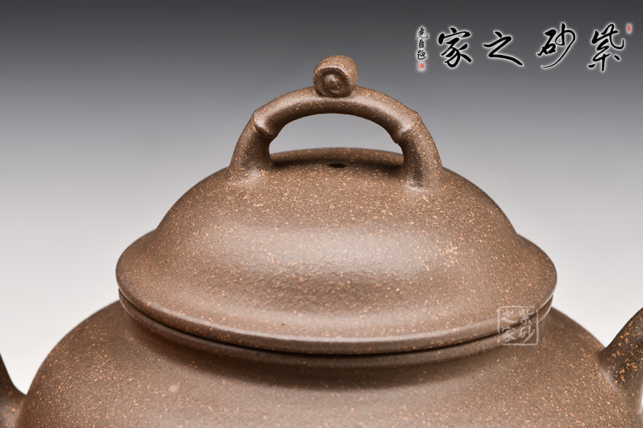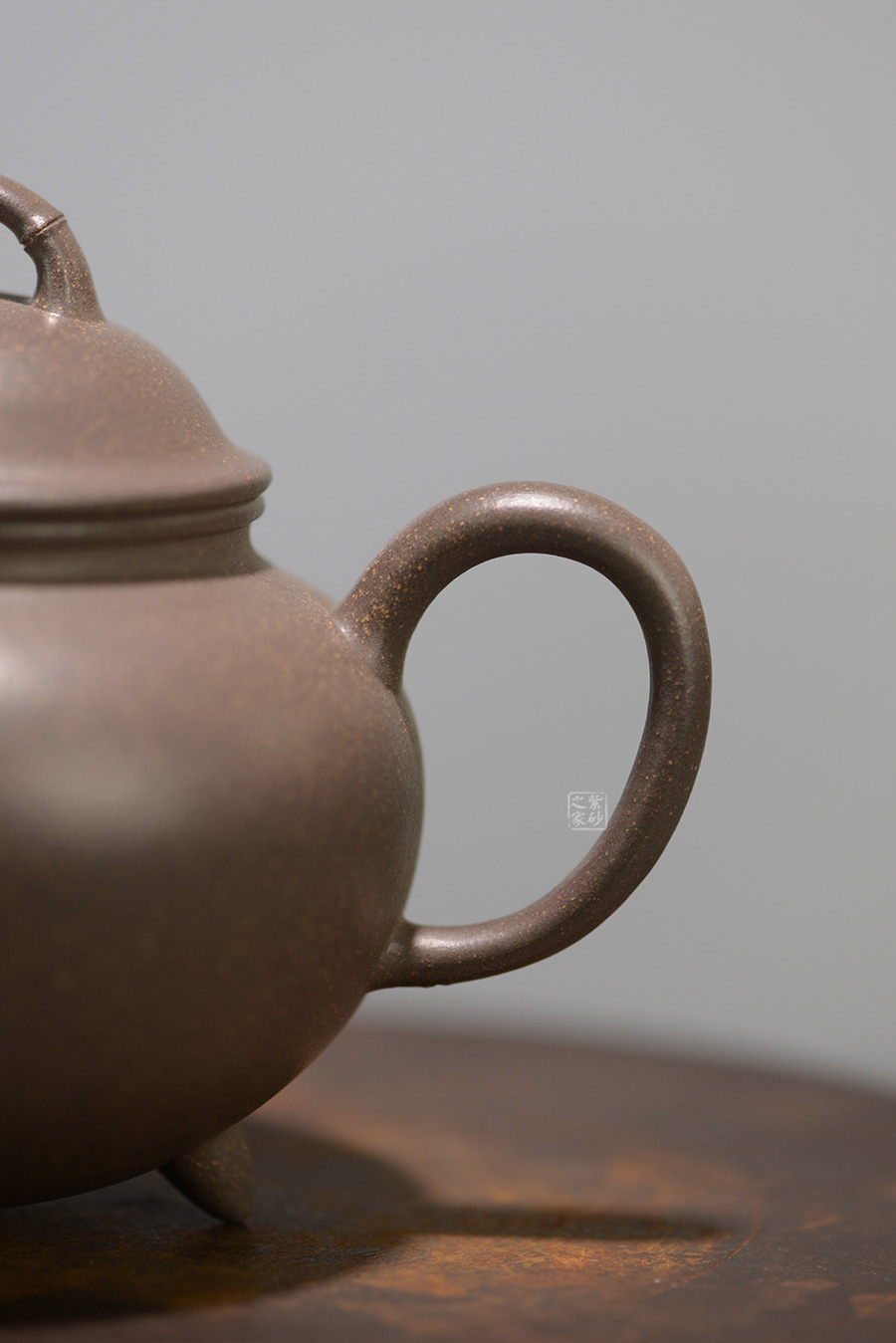 范忠君,宜興丁蜀鎮(zhèn)陶藝世家。此壺整體造型古樸大方,神形兼?zhèn)?/span>,泥料為青段;壺嘴順暢自然,出水爽快;壺把粗細(xì)適中,與壺身銜接自然,拿捏舒適。極具觀賞價(jià)值,宜收藏、把玩。