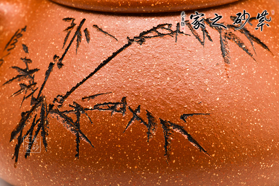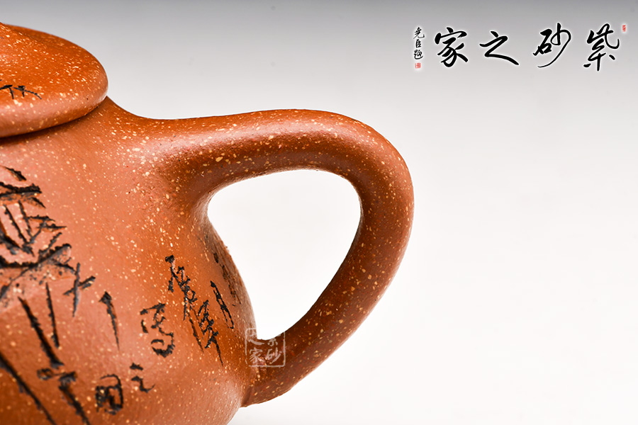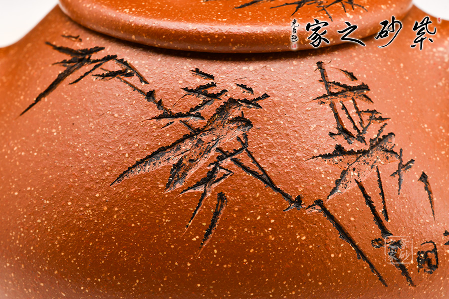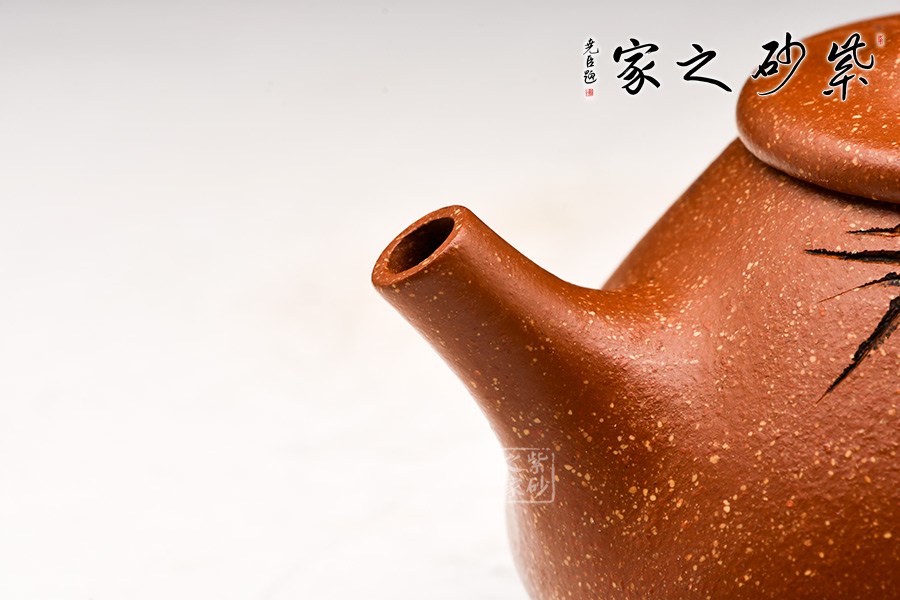 泥性:原礦因含緞泥、紅泥、紫泥等諸多共生礦,陶之后,于深沉之“橙紅色”底上,滿佈五彩斑斕的粗細、深淺之紅、黃星斑點。