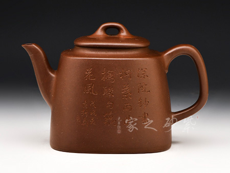 泥性:底槽青由于產(chǎn)于紫砂最底層,質(zhì)地特純,泥質(zhì)細(xì)膩、成色穩(wěn)重,呈棕色,在近代制壺名家廣泛使用。近年黃龍山四號井,因故塴蹋而封井,礦源日益短缺,殘留堆積風(fēng)化之“底槽青”因而愈顯珍貴;宜興紫砂舉世聞名,本泥功不可沒。