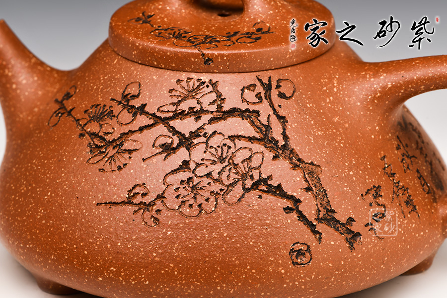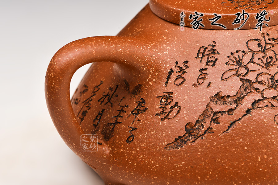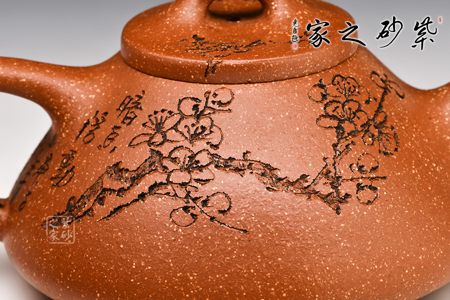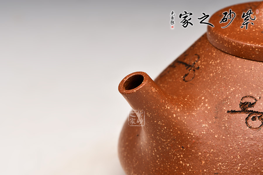 泥性:原礦因含緞泥、紅泥、紫泥等諸多共生礦,陶之后,于深沉之“橙紅色”底上,滿佈五彩斑斕的粗細(xì)、深淺之紅、黃星斑點(diǎn)。