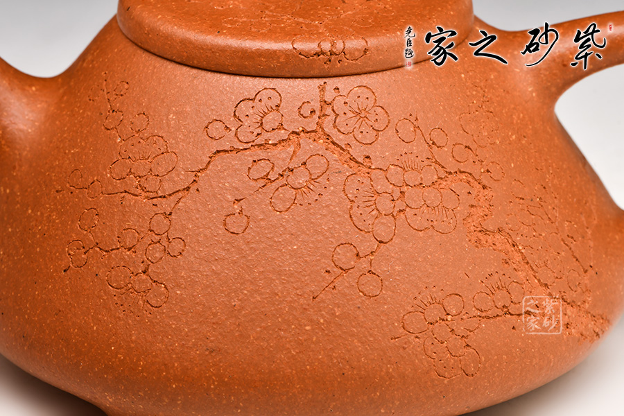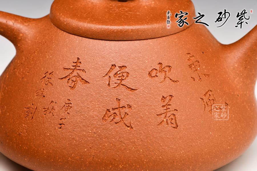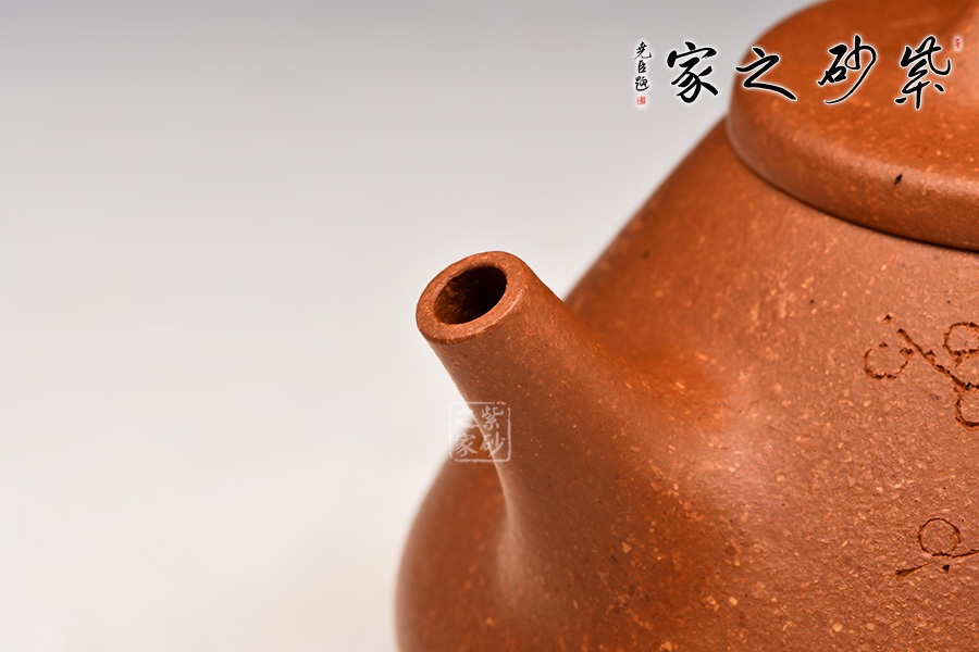 泥性:原礦因含緞泥、紅泥、紫泥等諸多共生礦,陶之后,于深沉之“橙紅色”底上,滿佈五彩斑斕的粗細(xì)、深淺之紅、黃星斑點(diǎn)。