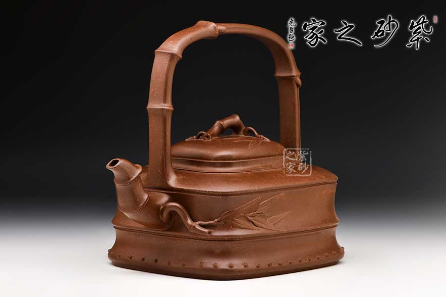 竹子代表節(jié)節(jié)高升,壺做成了四方提梁的式樣,因融入了竹子的題材而表達(dá)了生機(jī)勃勃的意思。