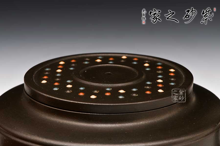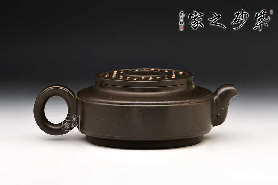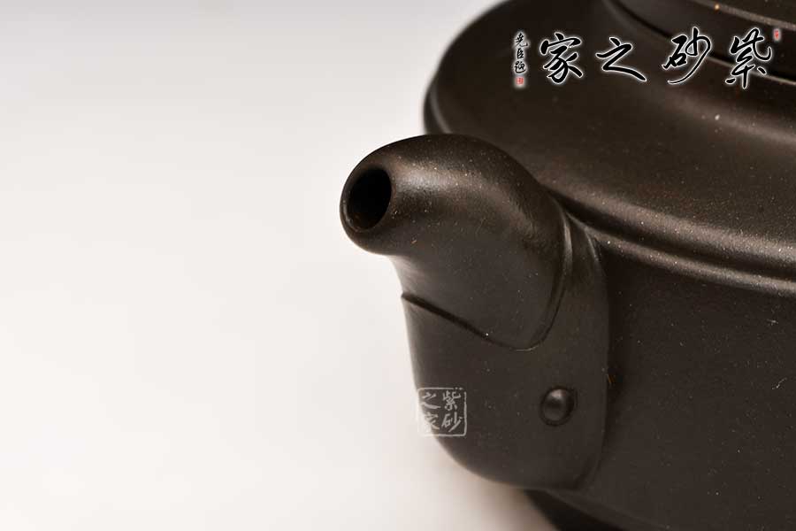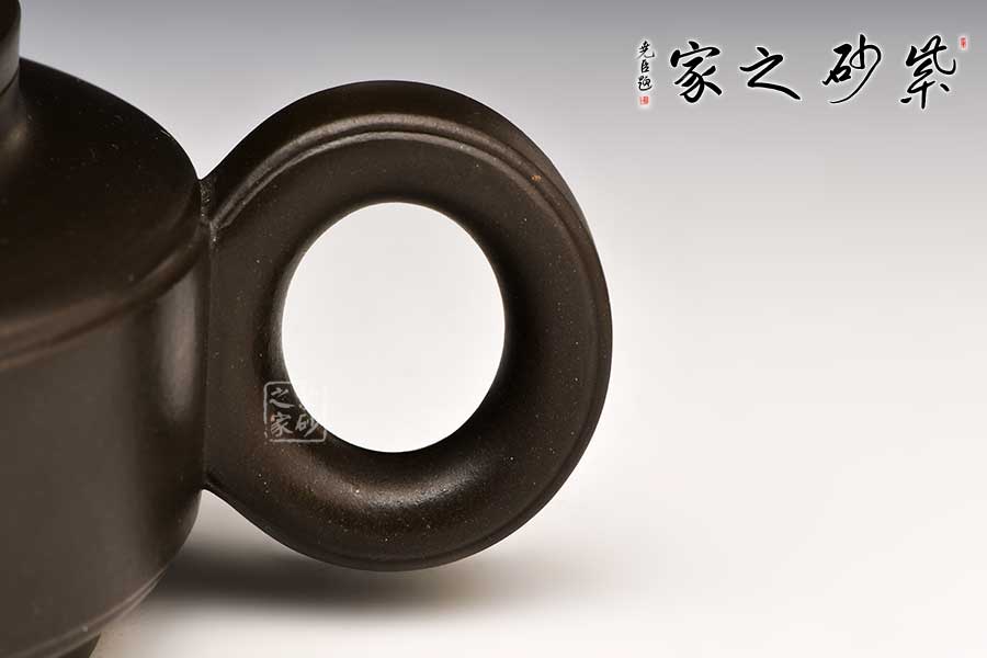 此壺成型難度高,在傳統(tǒng)的漢君形體基礎(chǔ)上創(chuàng)作而成,整壺方圓結(jié)合,渾然一體,壺嘴、把以抽象龍的造型裝飾整合,凸顯著一種龍的昂揚(yáng)向上的精神。