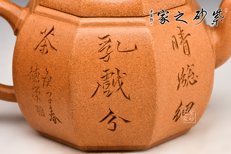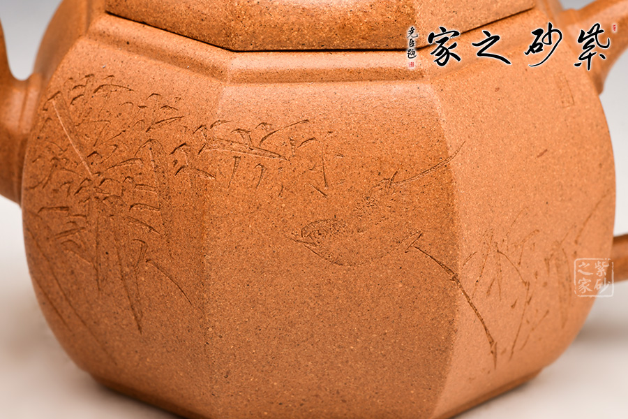 玲瓏八方壺壺身八面拼接成型,塊面銜接過渡棱角分明,肌理清晰。