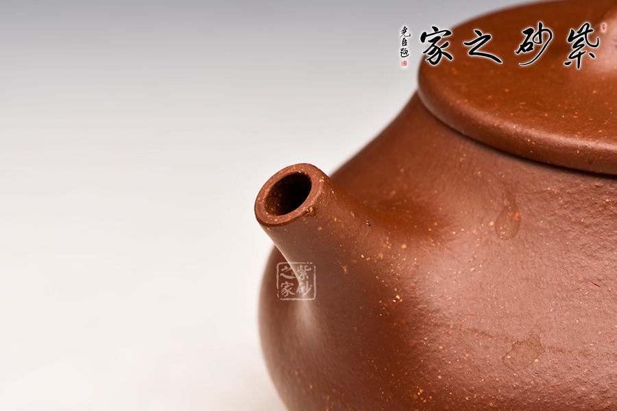 泥性:原礦因含緞泥、紅泥、紫泥等諸多共生礦,陶之后,于深沉之“橙紅色”底上,滿佈五彩斑斕的粗細、深淺之紅、黃星斑點。