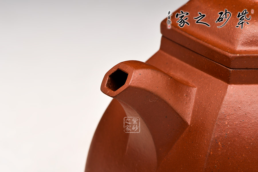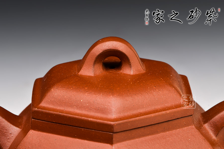 此壺便覺古樸典雅,柔和大方,不但有方器的挺秀,同時(shí)也有圓器的柔和,方中寓圓,圓中見方的特點(diǎn)著實(shí)讓人心中大感妙哉。壺身被均等分為六等分,鈕、流、把皆以方器展現(xiàn),與壺身相呼應(yīng),整體協(xié)調(diào)有致,真正做到了線條流暢,輪廓分明,平穩(wěn)莊重的境界,是一款升值空間極大的作品。