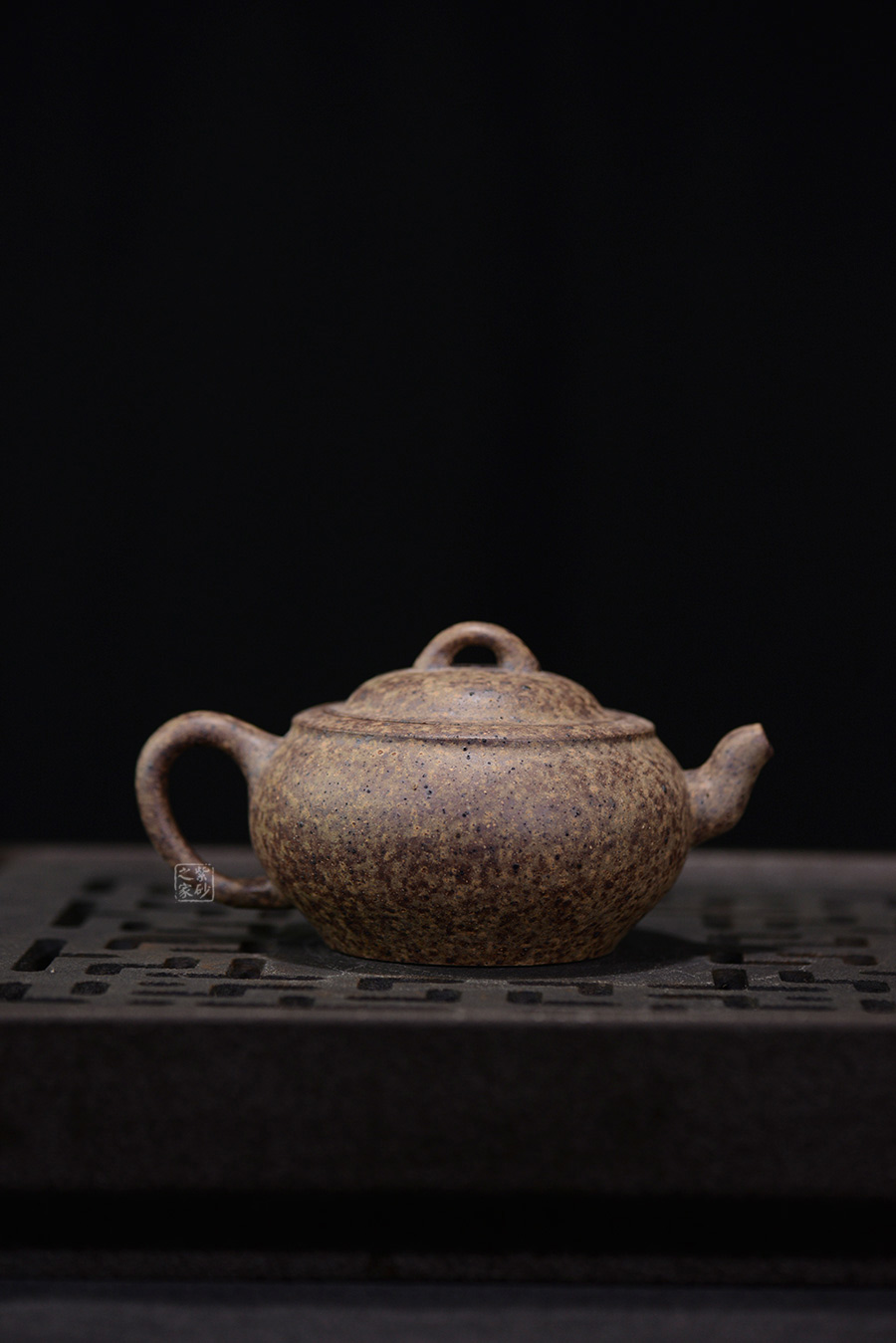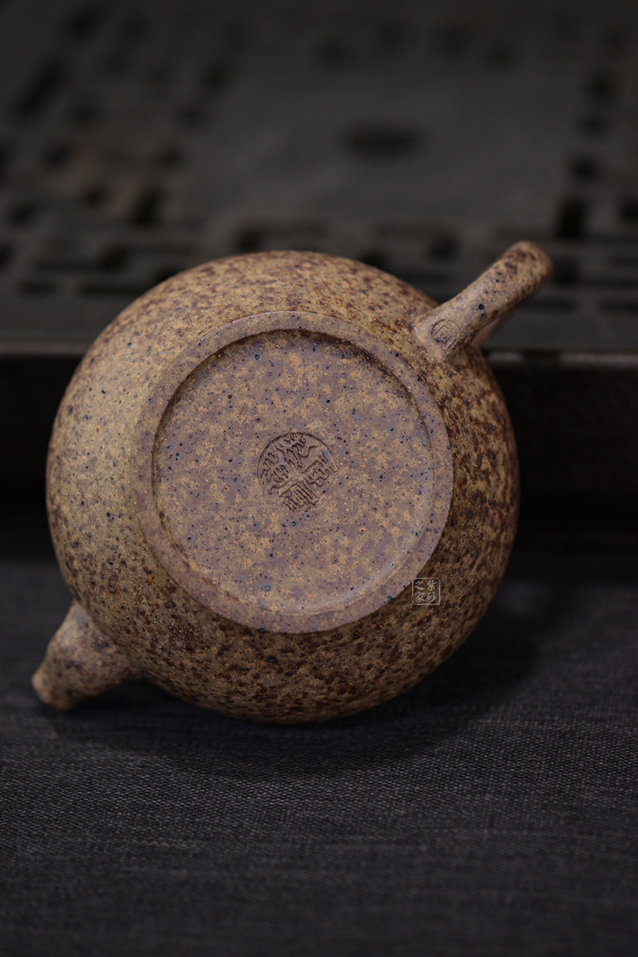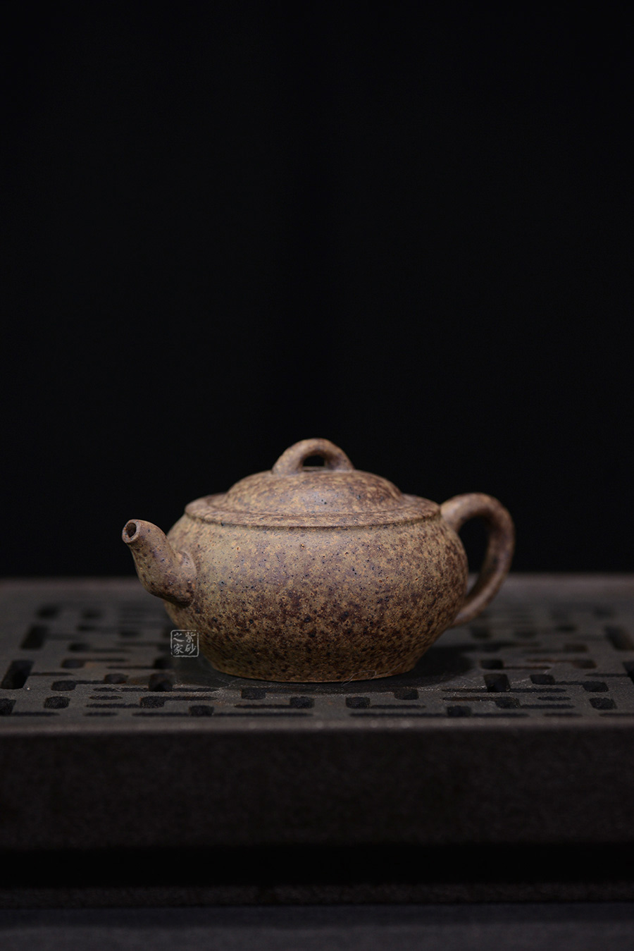 中國紫砂礦料中極為稀少的一種共融礦料,指的是自然的紅泥、綠泥、降坡泥、段泥、 紫泥等等,甚至更多不同品種的礦料蘊(yùn)藏在同層面結(jié)構(gòu)的共融礦。通過制作茶壺,把紫砂原礦的砂色美、厚重美、古樸美表現(xiàn)的淋漓盡致,砂色效果燦爛奇幻。