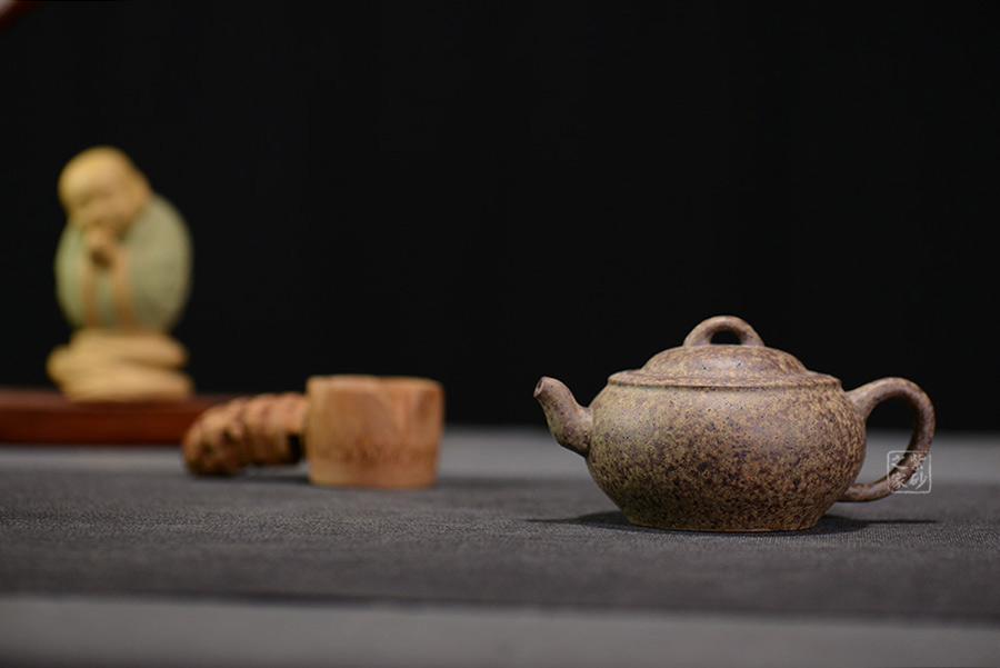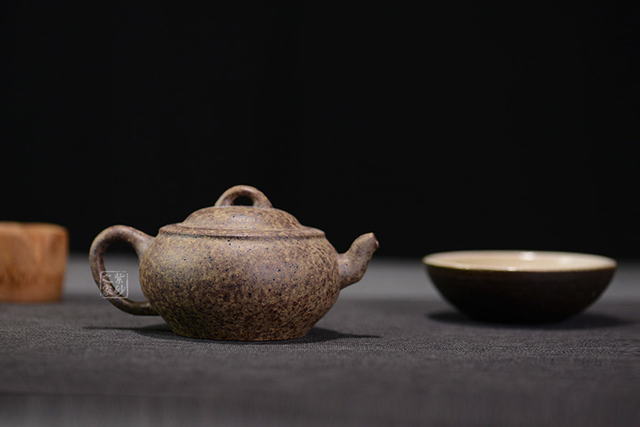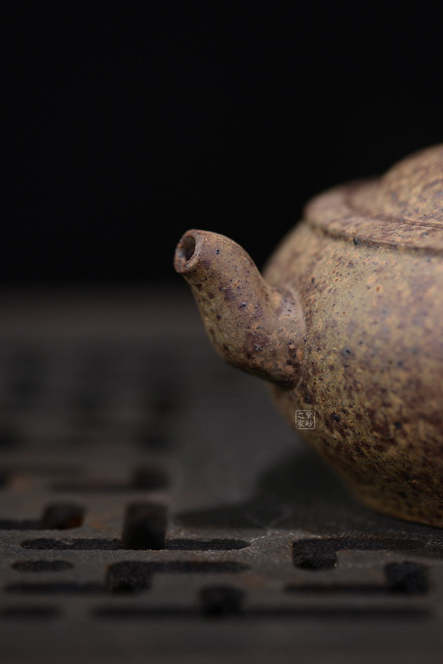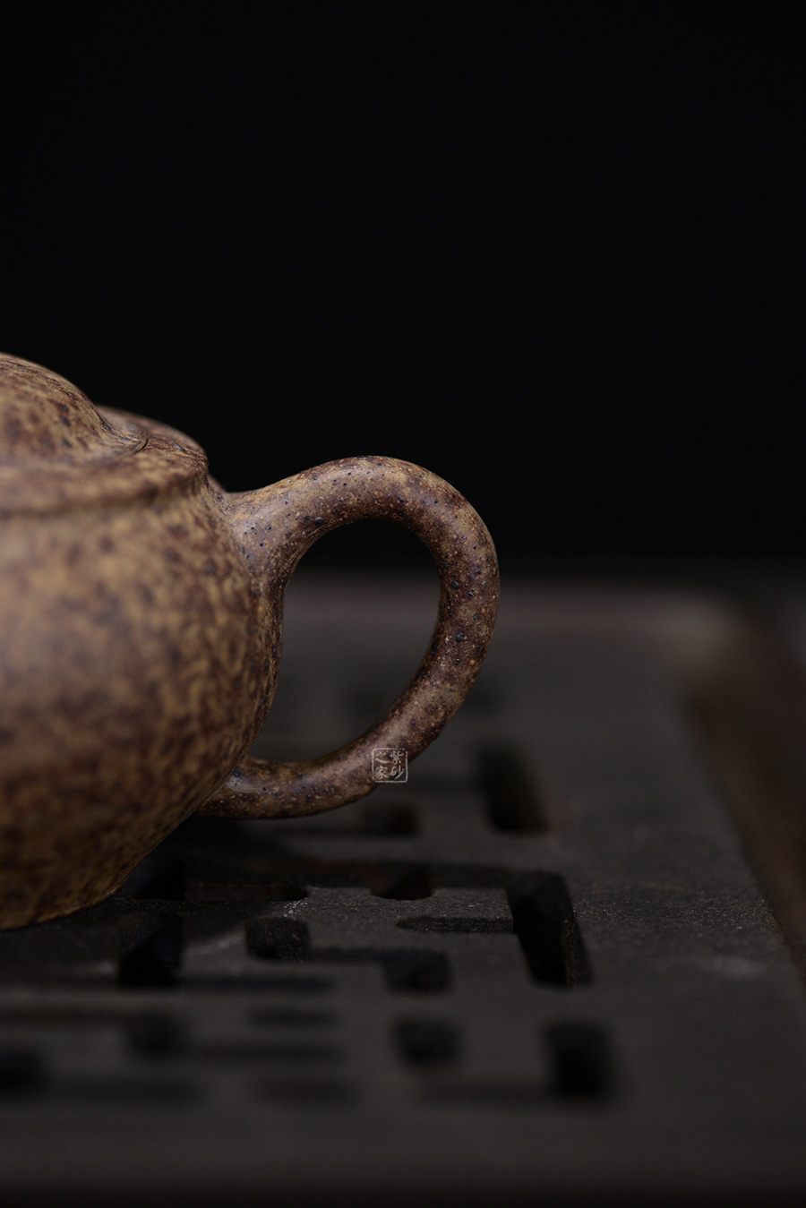 中國紫砂礦料中極為稀少的一種共融礦料,指的是自然的紅泥、綠泥、降坡泥、段泥、 紫泥等等,甚至更多不同品種的礦料蘊(yùn)藏在同層面結(jié)構(gòu)的共融礦。通過制作茶壺,把紫砂原礦的砂色美、厚重美、古樸美表現(xiàn)的淋漓盡致,砂色效果燦爛奇幻。
