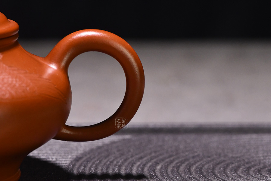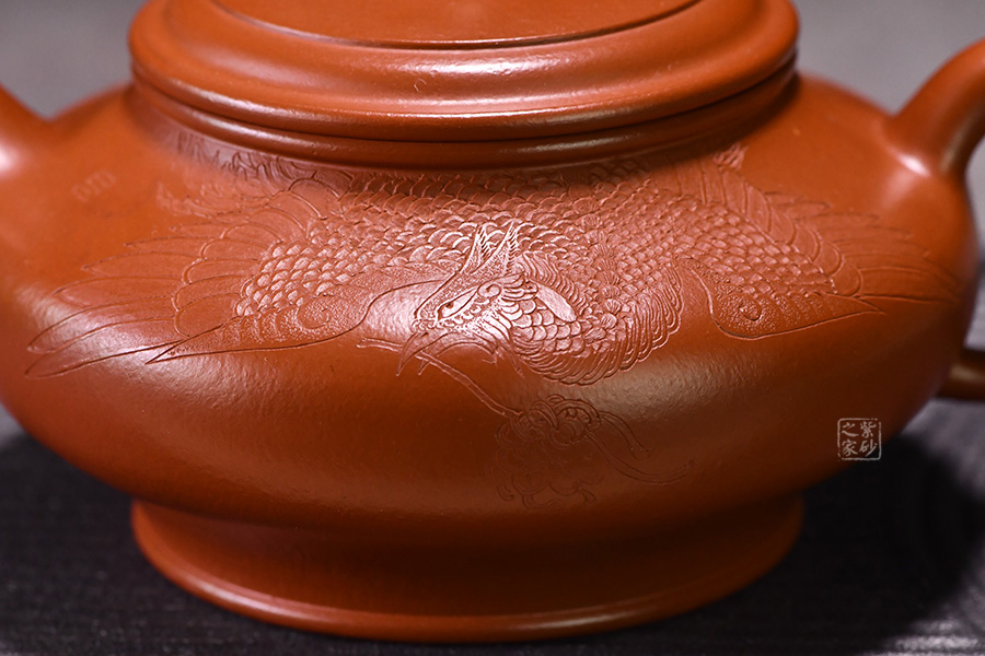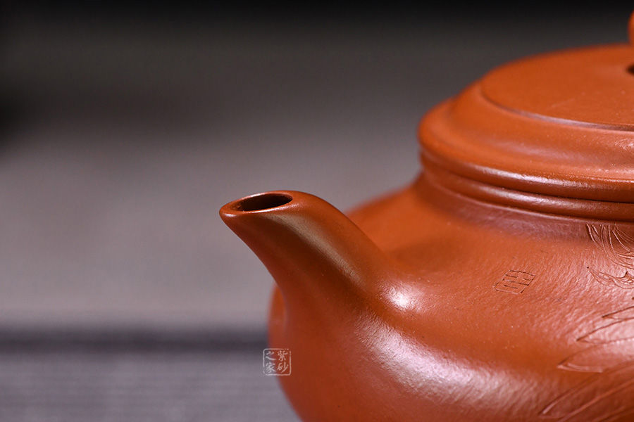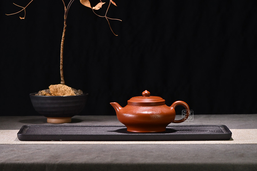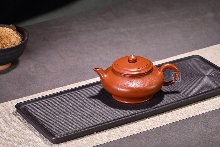 特點(diǎn):質(zhì)感綿密、緊實(shí)細(xì)緻,持之扎實(shí)沉重、紅潤(rùn)豔麗,泥中極品,無(wú)以倫比;泥胚含少許原礦顆粒,沖淋熱水后色變極大,呈紅中帶紫,養(yǎng)壺易現(xiàn)“包漿”之美。