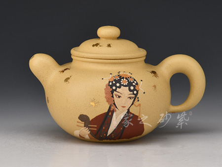 此壺線面簡潔流暢,壺身圓潤豐盈,將女子的優(yōu)雅飄逸展露無遺。壺嘴流短而粗大,身蓋相連呈截蓋,鈕為圓珠狀。壺流與把和諧對稱,鈕與壺底向里收斂,視覺上更顯穩(wěn)重大氣。
